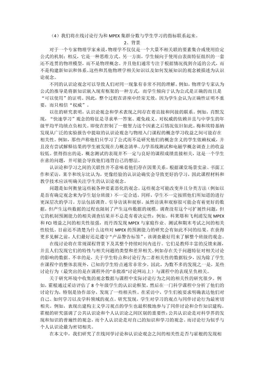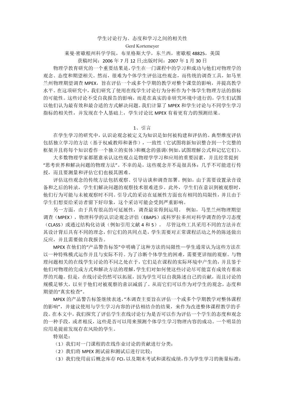 学生讨论行为、态度和学习之间的相关性外文翻译资料 2023-03-05 16:52:15 英语原文共 8 页,剩余内容已隐藏,支付完成后下载完整资料 英语译文共 10 页,剩余内容已隐藏,支付完成后下载完整资料 资料编号:[405175],资料为PDF文档或Word文档,PDF文档可免费转换为Word 原文和译文剩余内容已隐藏,您需要先支付 30元 才能查看原文和译文全部内容!立即支付 发小红书推广免费获取该资料资格。点击链接进入获取推广文案即可: Ai一键组稿 | 降AI率 | 降重复率 | 论文一键排版 PREVIOUS NEXT 您可能感兴趣的文章 在裸露的SrTiO3表面二维电子液的产生和调控外文翻译资料 (111)界面上的二维超导性和各向异性传输在外文翻译资料 MoS₂中的一维金属边缘态外文翻译资料 运用量子纠缠加强量子电池系统的能量提取外文翻译资料 GeSe 纳米片和纳米带的可调电子结构外文翻译资料 铁电隧道结中的隧穿异常霍尔效应外文翻译资料 Zn0纳米线表面激振子发射的动力学外文翻译资料 测量碳纳米弹簧的压缩量外文翻译资料 由自绕式纤维执行器驱动的可调节自振系统外文翻译资料 自接触杆的非线性动态缠绕外文翻译资料