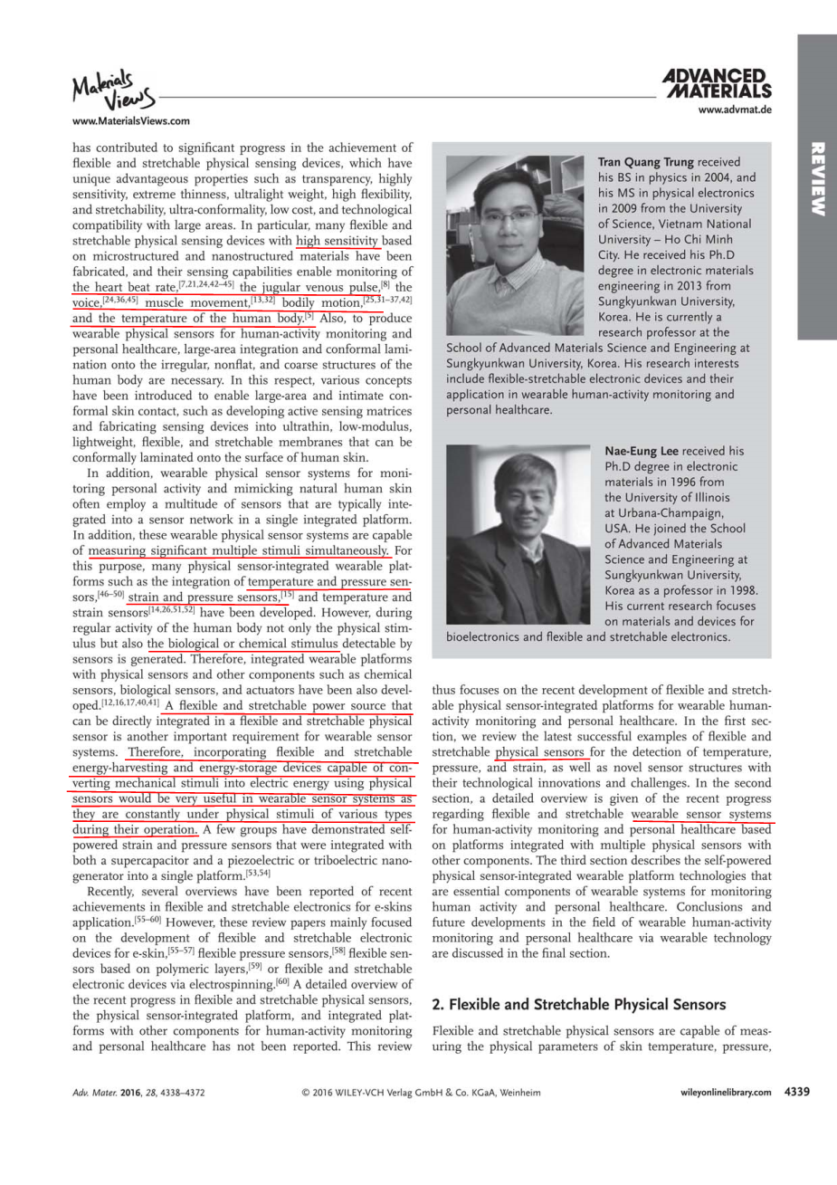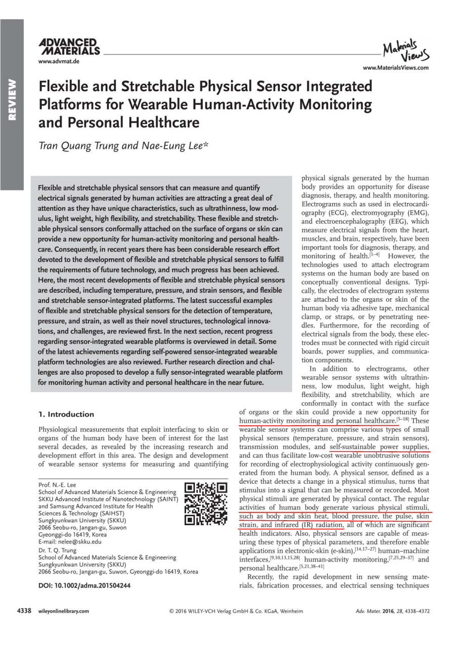 次世代的具有可穿戴电子系统和移动交互功能的产品,对于从周围环境和人类运动中收集能量提出了极高的要求,而不是依靠可循环充电的电池提供能量。1-5基于纤维的可穿戴式发电设备对于佩戴者来说轻便且舒适,是非常理想的设计。基于软纤维的柔性发电设备可通过此方式设计成可以在大量的变形循环中实现低水平的应变,并具有高抗疲劳特性。此外,具有优良压电特性的压电纳米材料为聚合物复合材料和复合纤维的研究提供了很好的途径。6-14因此,从人体运动中收集足够能量的柔性发电设备是可行的,并且十分具有吸引力。13,15,16
