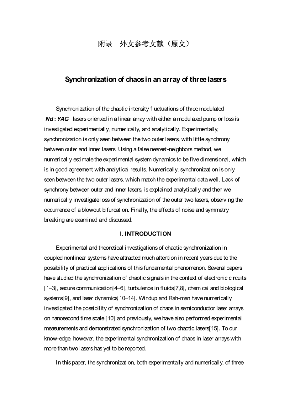 三台激光阵列中的混沌同步外文翻译资料 2023-03-10 15:29:18 英语原文共 19 页,剩余内容已隐藏,支付完成后下载完整资料 英语译文共 16 页,剩余内容已隐藏,支付完成后下载完整资料 资料编号:[404890],资料为PDF文档或Word文档,PDF文档可免费转换为Word 原文和译文剩余内容已隐藏,您需要先支付 30元 才能查看原文和译文全部内容!立即支付 发小红书推广免费获取该资料资格。点击链接进入获取推广文案即可: Ai一键组稿 | 降AI率 | 降重复率 | 论文一键排版 PREVIOUS NEXT 您可能感兴趣的文章 在裸露的SrTiO3表面二维电子液的产生和调控外文翻译资料 (111)界面上的二维超导性和各向异性传输在外文翻译资料 MoS₂中的一维金属边缘态外文翻译资料 运用量子纠缠加强量子电池系统的能量提取外文翻译资料 GeSe 纳米片和纳米带的可调电子结构外文翻译资料 铁电隧道结中的隧穿异常霍尔效应外文翻译资料 Zn0纳米线表面激振子发射的动力学外文翻译资料 测量碳纳米弹簧的压缩量外文翻译资料 由自绕式纤维执行器驱动的可调节自振系统外文翻译资料 自接触杆的非线性动态缠绕外文翻译资料