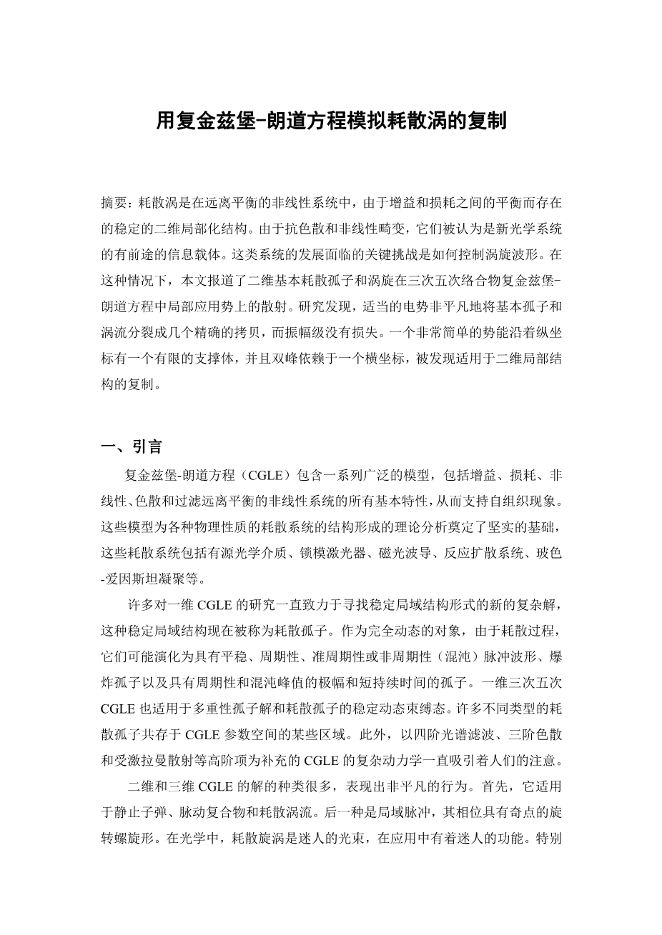 强非局域介质中椭圆光孤子的研究外文翻译资料 2022-03-01 21:24:33 英语原文共 8 页,剩余内容已隐藏,支付完成后下载完整资料 英语译文共 39 页,剩余内容已隐藏,支付完成后下载完整资料资料编号:[430497],资料为PDF文档或Word文档,PDF文档可免费转换为Word 原文和译文剩余内容已隐藏,您需要先支付 30元 才能查看原文和译文全部内容!立即支付 发小红书推广免费获取该资料资格。点击链接进入获取推广文案即可: Ai一键组稿 | 降AI率 | 降重复率 | 论文一键排版 PREVIOUS NEXT 您可能感兴趣的文章 在裸露的SrTiO3表面二维电子液的产生和调控外文翻译资料 (111)界面上的二维超导性和各向异性传输在外文翻译资料 MoS₂中的一维金属边缘态外文翻译资料 运用量子纠缠加强量子电池系统的能量提取外文翻译资料 GeSe 纳米片和纳米带的可调电子结构外文翻译资料 铁电隧道结中的隧穿异常霍尔效应外文翻译资料 Zn0纳米线表面激振子发射的动力学外文翻译资料 测量碳纳米弹簧的压缩量外文翻译资料 由自绕式纤维执行器驱动的可调节自振系统外文翻译资料 自接触杆的非线性动态缠绕外文翻译资料