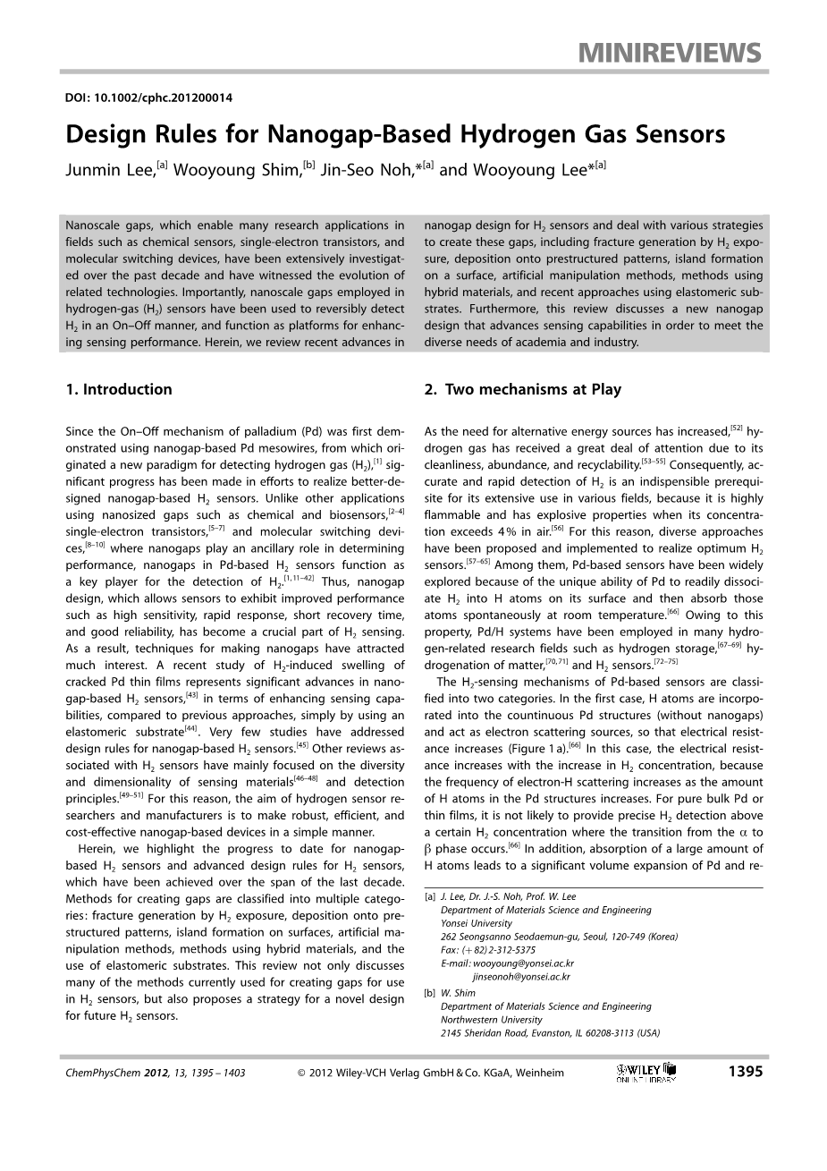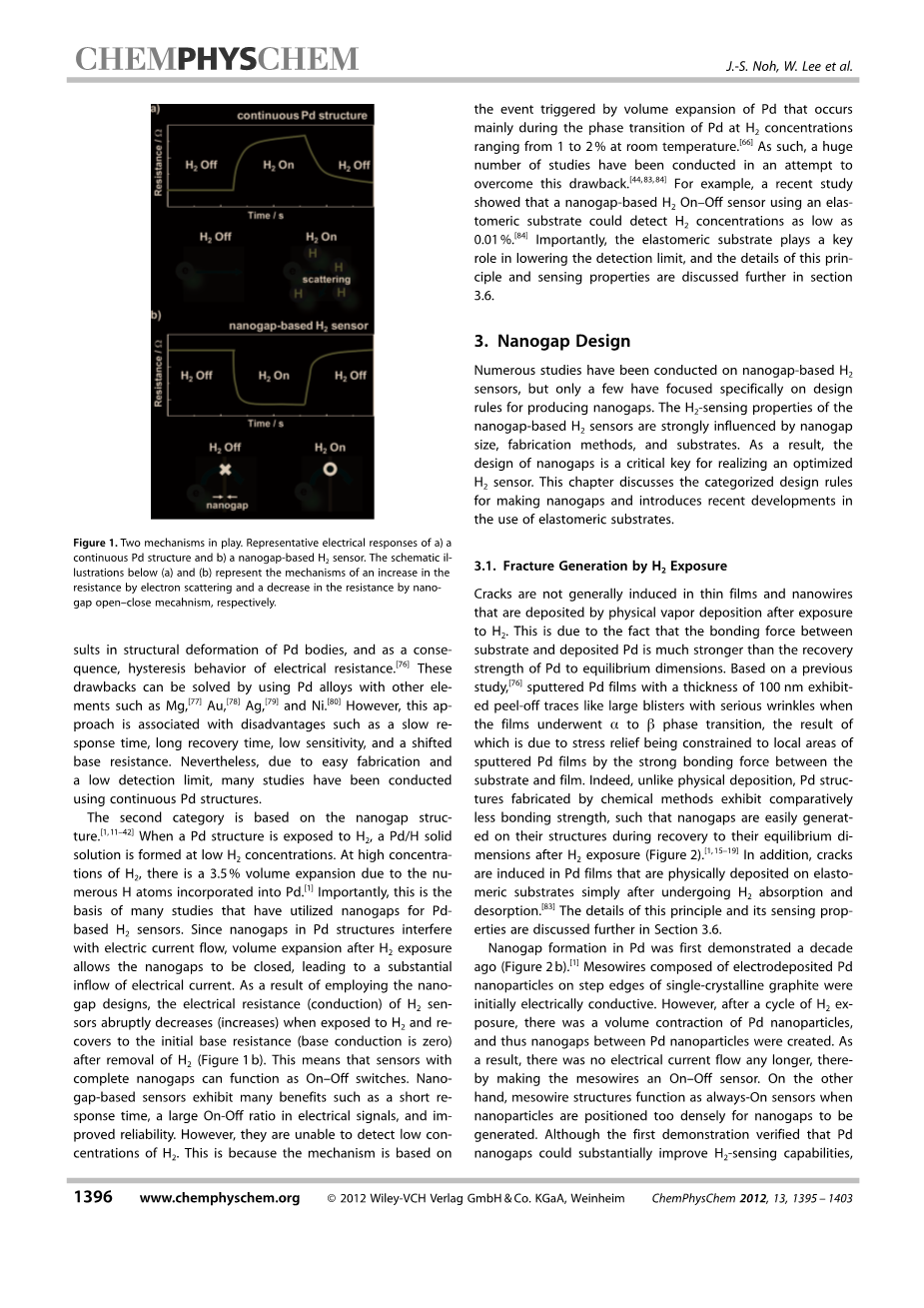 纳米级间隙被运用在化学传感器,单体晶体管和分子开关装置等很多领域, 他们已经在过去的十年中被广泛的调查 并且见证了相关技术的演变。重要的是, 纳米级间隙被应用在氢气传感器上这项技术已经被用于可逆检测氢气,不仅可以作为一种开关,还能作为提高传感性的平台。在此,我们回顾了近年来在纳米间隙的氢气传感器的研究进展,还处理各种策略来创造这项间隙,包括通过氢气暴露产生断裂带,沉积到预建构模式,在表面形成岛屿,用人工操作以混合材料的方法。