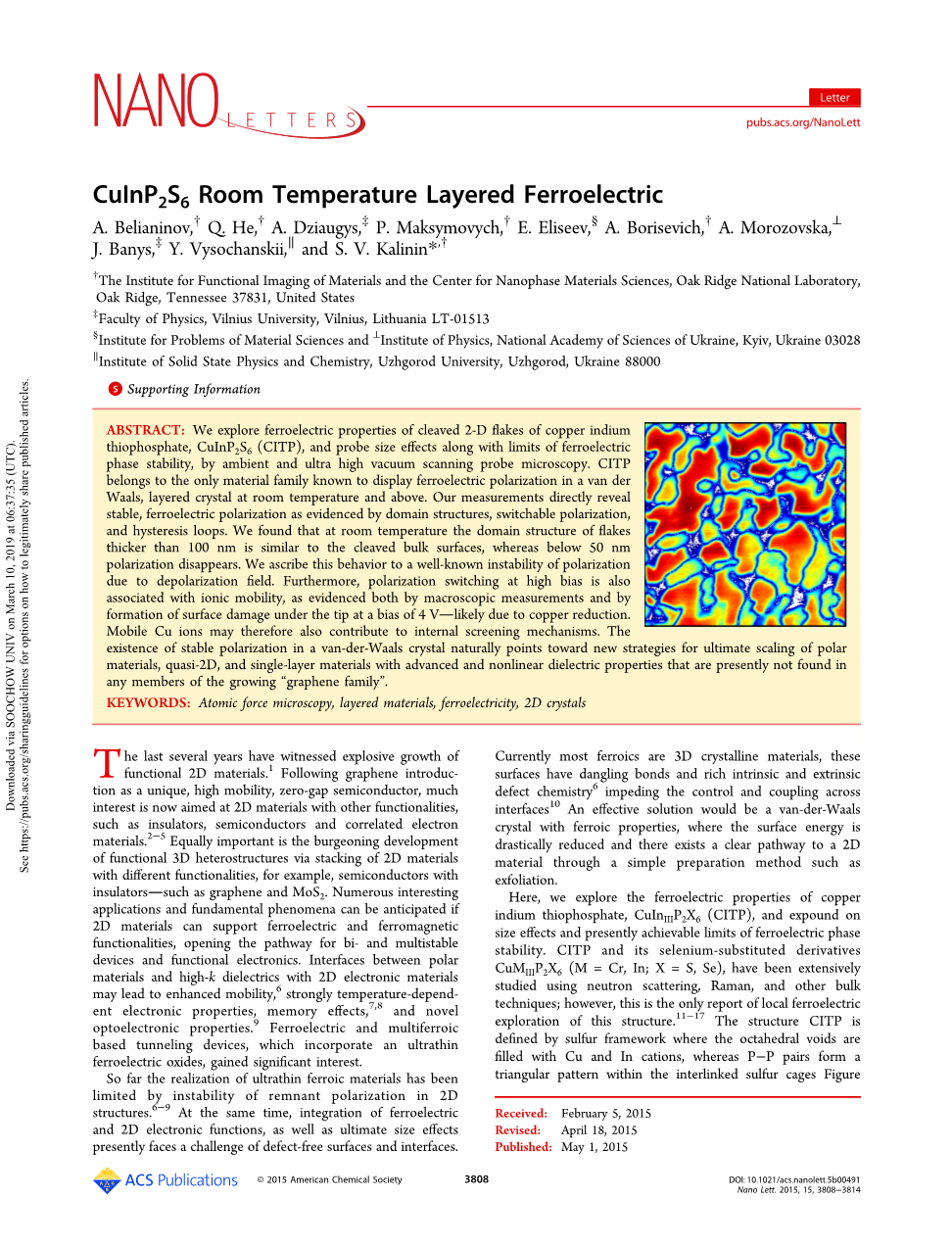 A.Belianinov, Q. He, A. Dziaugys, P. Maksymovych, E. Eliseev, A. Borisevich, A. Morozovska, J. Banys, Y. Vysochanskii, and S. V. Kalinin,