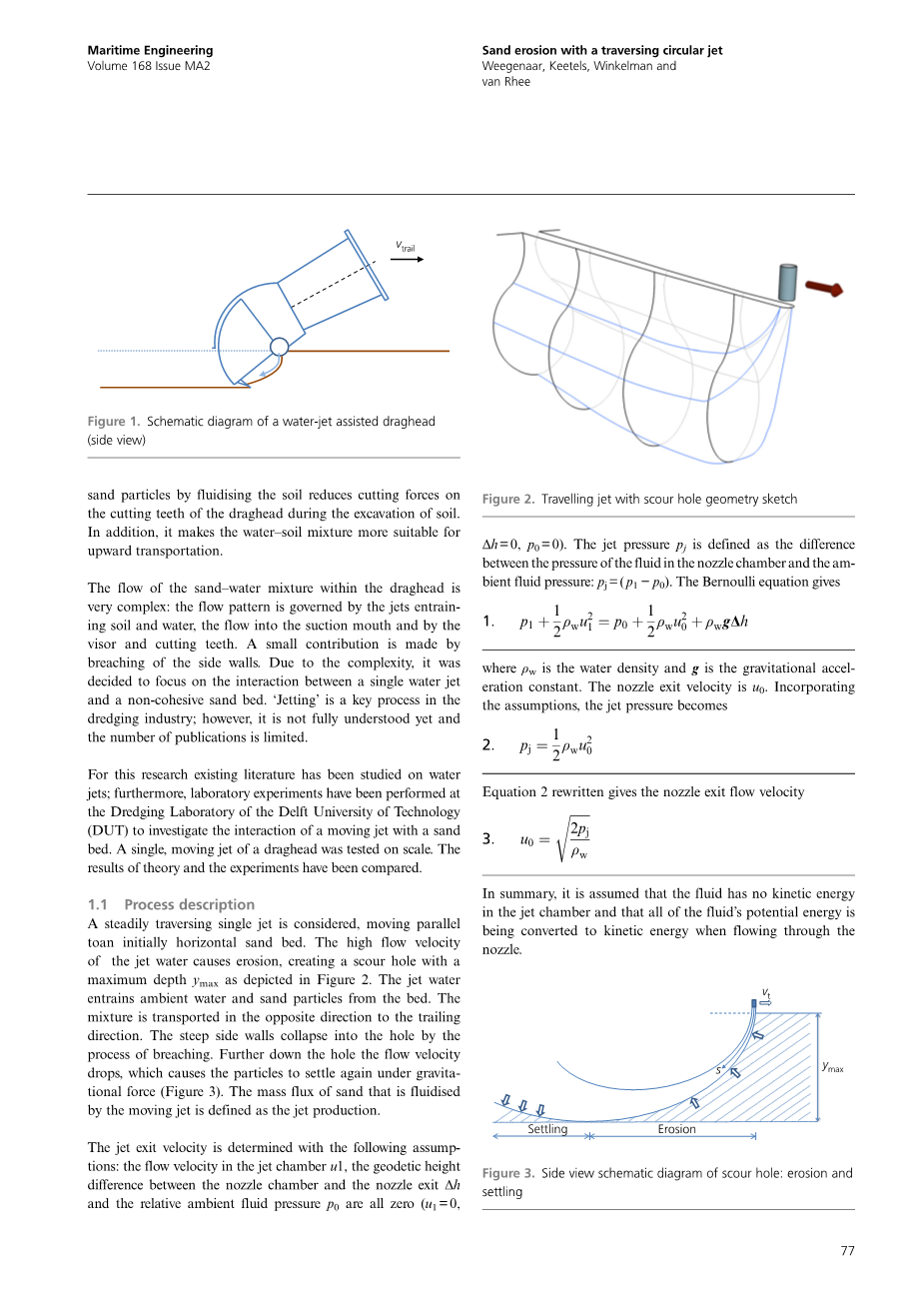 对于这个研究而言,已经有现存的文献对水射流进行研究。同时,实验室的实验已经在DUT的疏浚实验室进行,从而观测移动射流和砂床间的相互作用。耙头的单一移动射流在一定程度上测试。理论结果和实验结果会被比较。