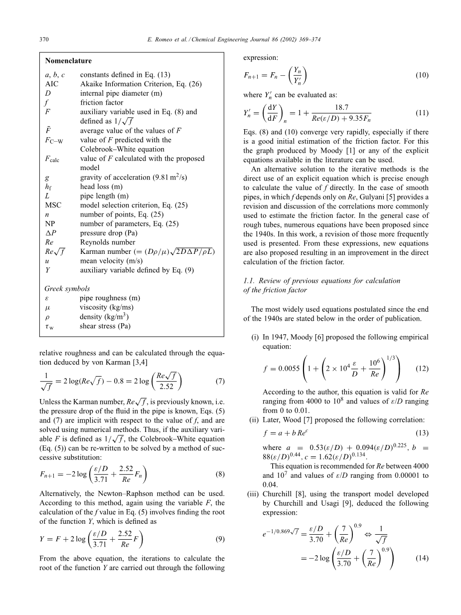 模型3,等式 (29)是Zigrang和Sylvester模型Eq的扩展。 (21),并通过模型1I作为初始估计,在Colebrook-White方程中进行了三个内部迭代而获得(请参见表2):