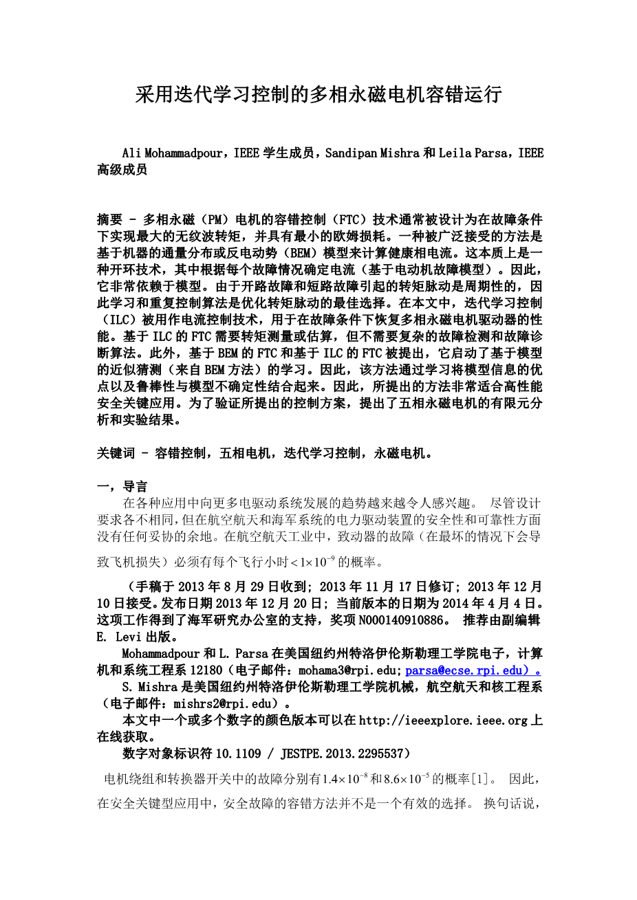 基于迭代学习控制方法的系统容错控制研究外文翻译资料