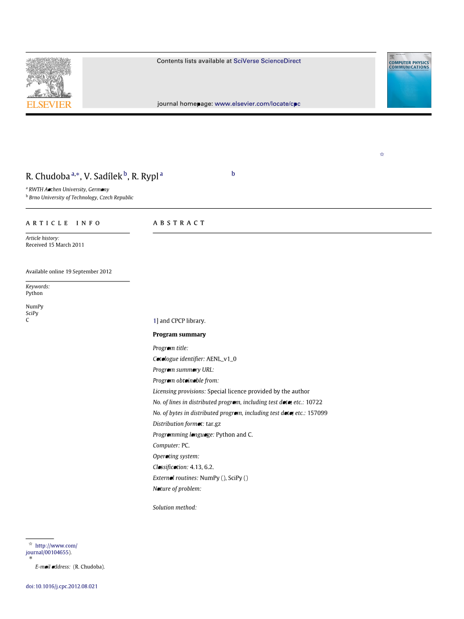 在过去的十年中,开源软件领域出现了一个特别吸引人的开发环境。 脚本语言Python已经建立了开发和集成两个丰富的数字库numpy和scipy的平台。这些库体现了过去几十年在编译语言FORTRAN和C (http://www.netlib.org)中开发的算法和方法。教科书已经充分地介绍了应用于科学应用的Python脚本编程的灵活性[3]。正如[4,5]中进一步记载的那样,脚本语言的高度灵活性并不一定伴随着编译代码的低效率。事实上,当使用紧凑阵列表示[6]以矢量化形式实现数学表达式时,灵活性和效率之间的冲突被降低到可接受的水平[7]。