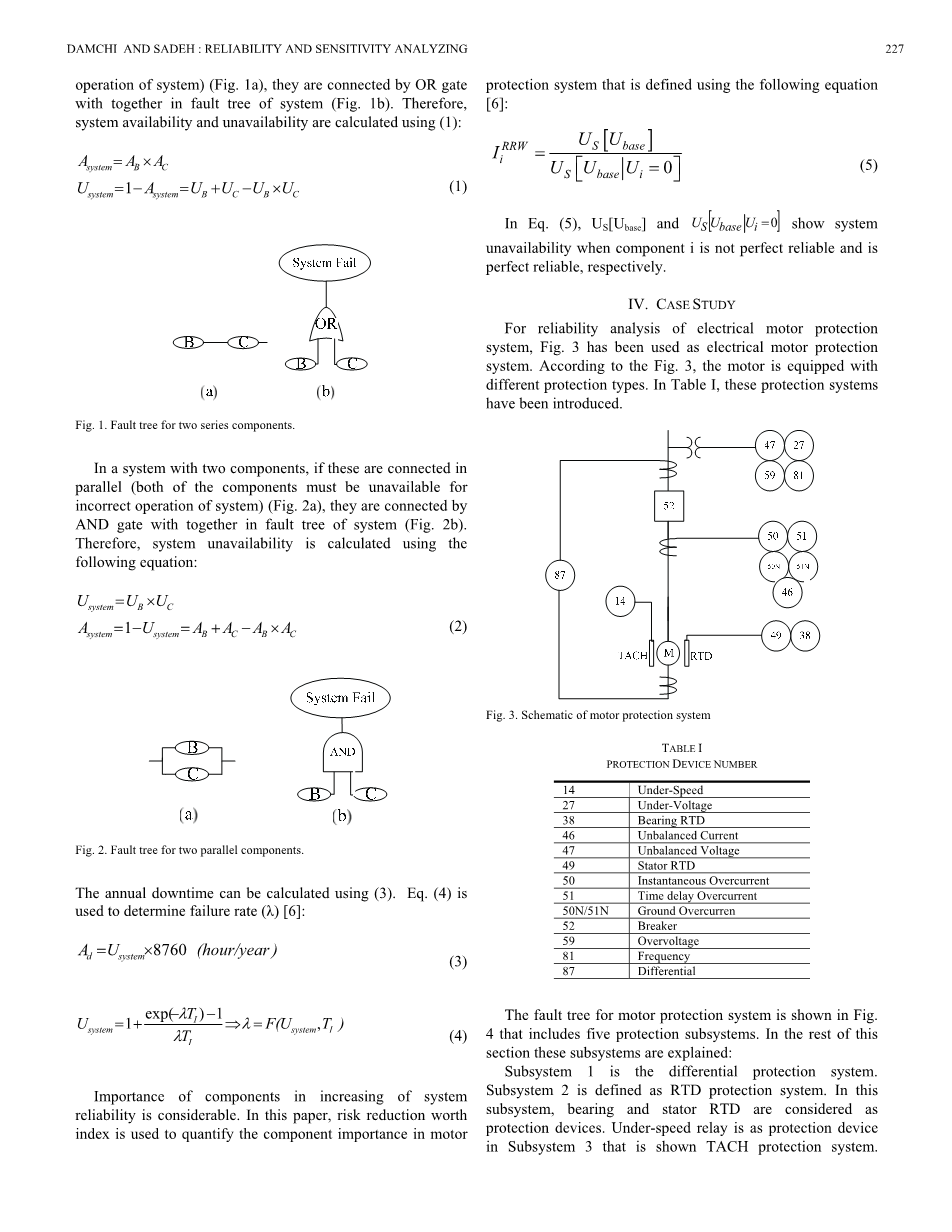 对于电动机保护系统的可靠性分析,图3已被用作电动机保护系统。 根据图3,电机配备了不同的保护类型。 在表I中,已经引入了这些保护系统。