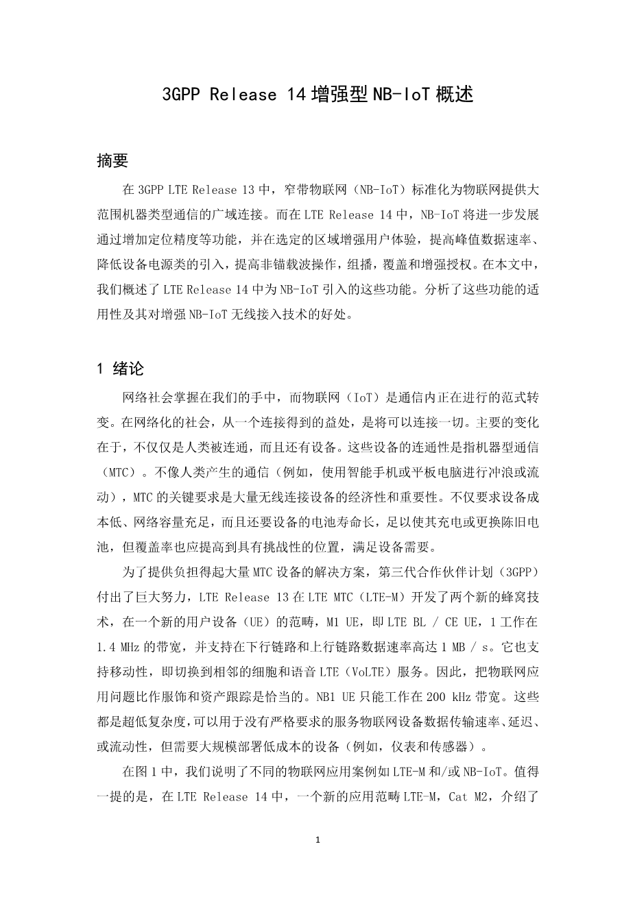 Overview of 3GPP Release 14 Enhanced NB-IoT