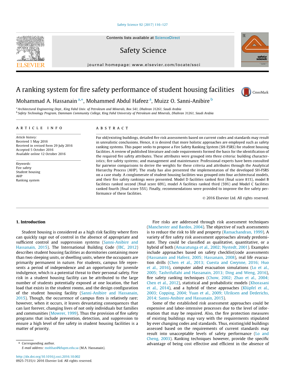 足够的数据用于详细的风险评估。香港高层非住宅建筑物的排名技术是由香港提出的。周和吕也为香港的卡拉OK场所提出消防安全评级制度。尽管需要不断确保学生住宿设施的令人满意的安全性能,但很少有研究。此外,全面的文献调查显示,在学生住房设施中没有使用消防安全评级方法的研究。