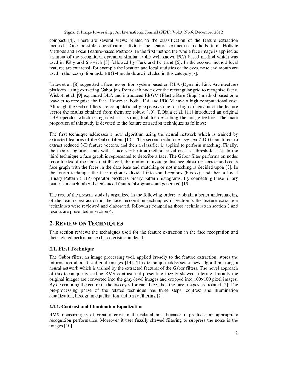 基于传统特征提取算法的人脸识别外文翻译资料