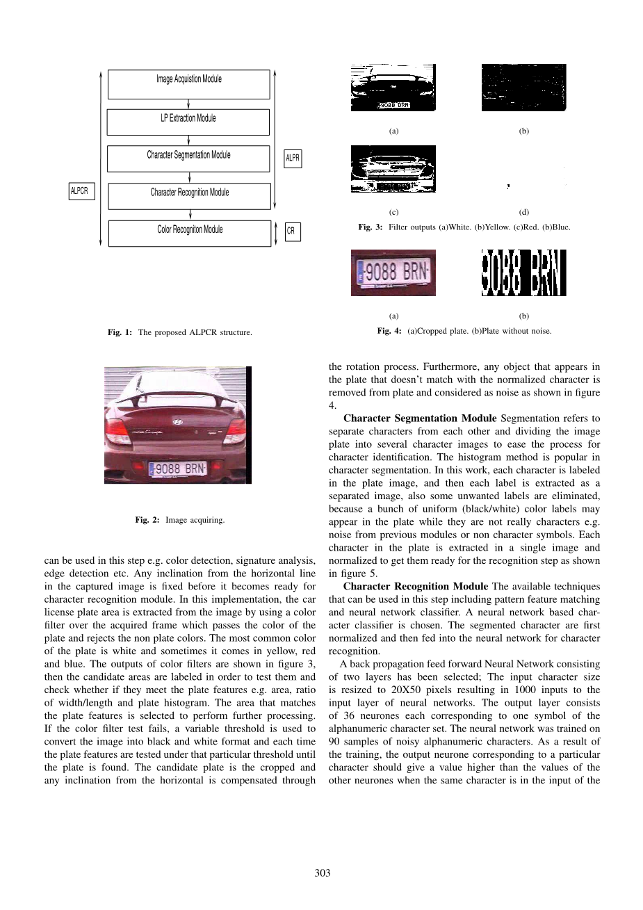 通常,LPR算法通常由三个处理步骤组成,即提取牌照区域,从板区域分割字符以及识别每个字符。 根据形状,对称性[5],高宽比[7],颜色[6]和强度值的变化[9]确定提取的车牌区域。字符分割过去通过以下技术完成: 投影[10],放松标记[11]和斑点着色。 使用的字符识别技术包括遗传算法[6]和人工神经网络[8]。