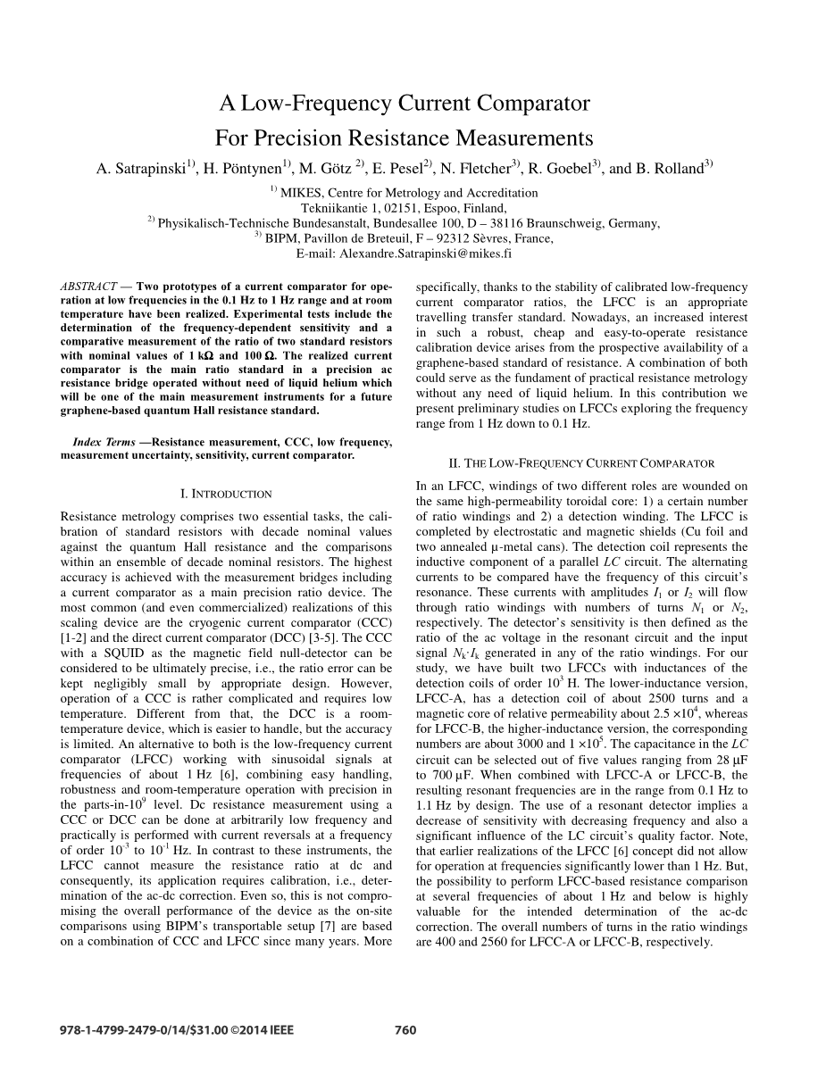 如今,由于基于石墨烯的电阻标准的前瞻性可用性,对如此稳健,便宜和易于操作的电阻校准装置的兴趣增加。两者的结合可以作为实际阻力测量的基础而不需要液氦。 在本文中,我们将介绍LFCC的初步研究,探索从1赫兹到0.1赫兹的频率范围。