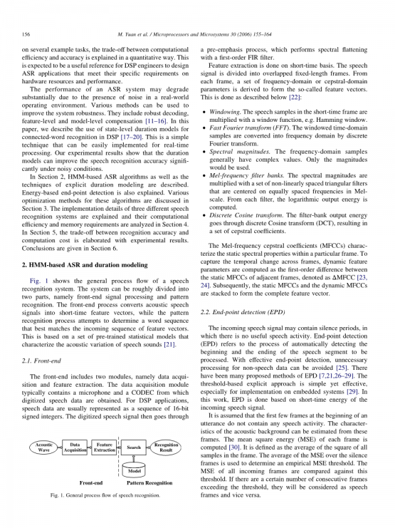 在第2节中,介绍了基于HMM的ASR算法以及显式持续时间建模技术。还解释了基于能量的端点检测。这些算法的各种优化方法将在第3节中讨论。第4节介绍了三种不同语音识别系统的实现细节,分析了它们的计算效率和内存需求。在第5节中,结合实验结果,阐述了识别精度与计算代价之间的权衡。结论见第6节。