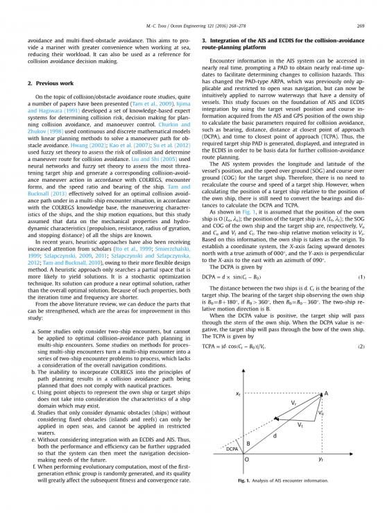 近年来,启发式算法也受到学者们越来越多的关注(Ito等,1999; Smierzchalski 1999; Szlapczynski,2009, 2011; Szlapczynski和Szlapczynska, 2012; Tam和Bucknall,2010年),这是由于该设计方法更加灵活。启发式算法仅搜索更有可能产生解决方案的部分空间。这是一种随机优化技术。它的解可以产生一个接近最优的解,而不是整体最优解决方案。由于启发式算法的这些属性,他的迭代时间和频率都较短。