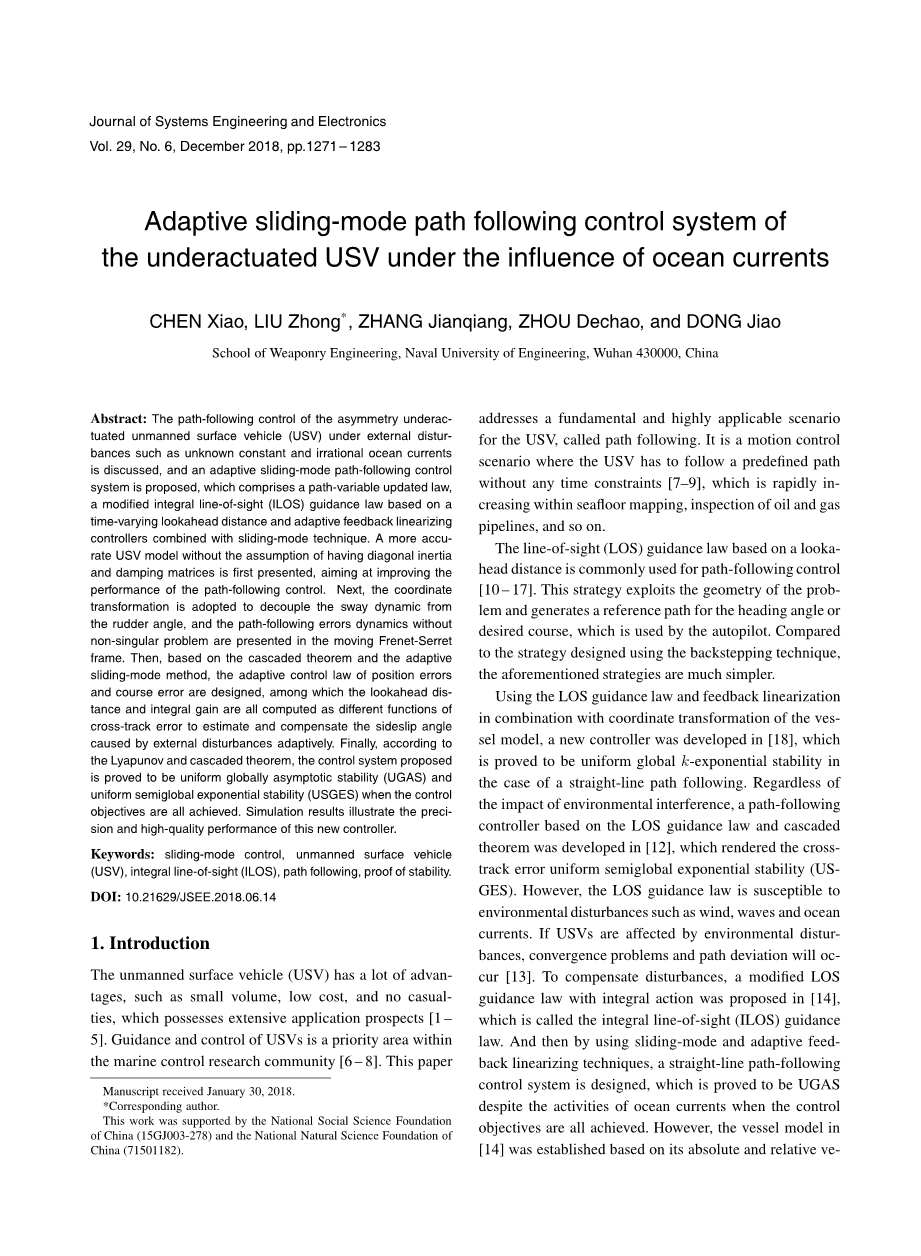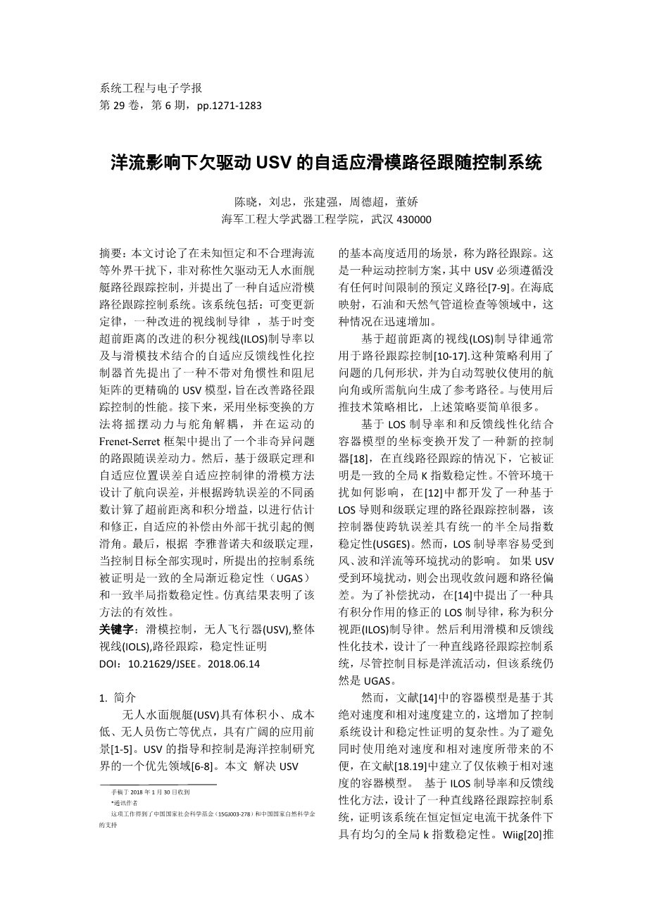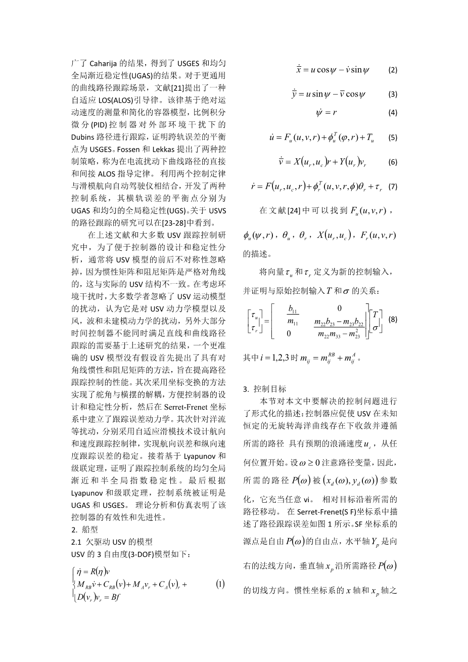 洋流影响下欠驱动USV的自适应滑模路径跟随控制系统外文翻译资料 2022-08-09 16:15:31 英语原文共 13 页,剩余内容已隐藏,支付完成后下载完整资料 英语译文共 12 页,剩余内容已隐藏,支付完成后下载完整资料 资料编号:[238937],资料为PDF文档或Word文档,PDF文档可免费转换为Word 原文和译文剩余内容已隐藏,您需要先支付 30元 才能查看原文和译文全部内容!立即支付 发小红书推广免费获取该资料资格。点击链接进入获取推广文案即可: Ai一键组稿 | 降AI率 | 降重复率 | 论文一键排版 PREVIOUS NEXT 您可能感兴趣的文章 彩色图像中的人脸检测与识别外文翻译资料 一种非线性离散奇异大规模控制系统的稳定性外文翻译资料 融合领域特定和可训练的特征,用于人脸图像的性别识别外文翻译资料 ASP. NET概述外文翻译资料 基于深度卷积激活特性的地面云分类外文翻译资料 at89s52单片机简介外文翻译资料 实时多手势识别人机交互系统外文翻译资料 基于DTW改进算法的语音识别外文翻译资料 研究区域自动气象站的后端实时数据质量控制方法外文翻译资料 电动汽车的智能前车灯控制器设计外文翻译资料
