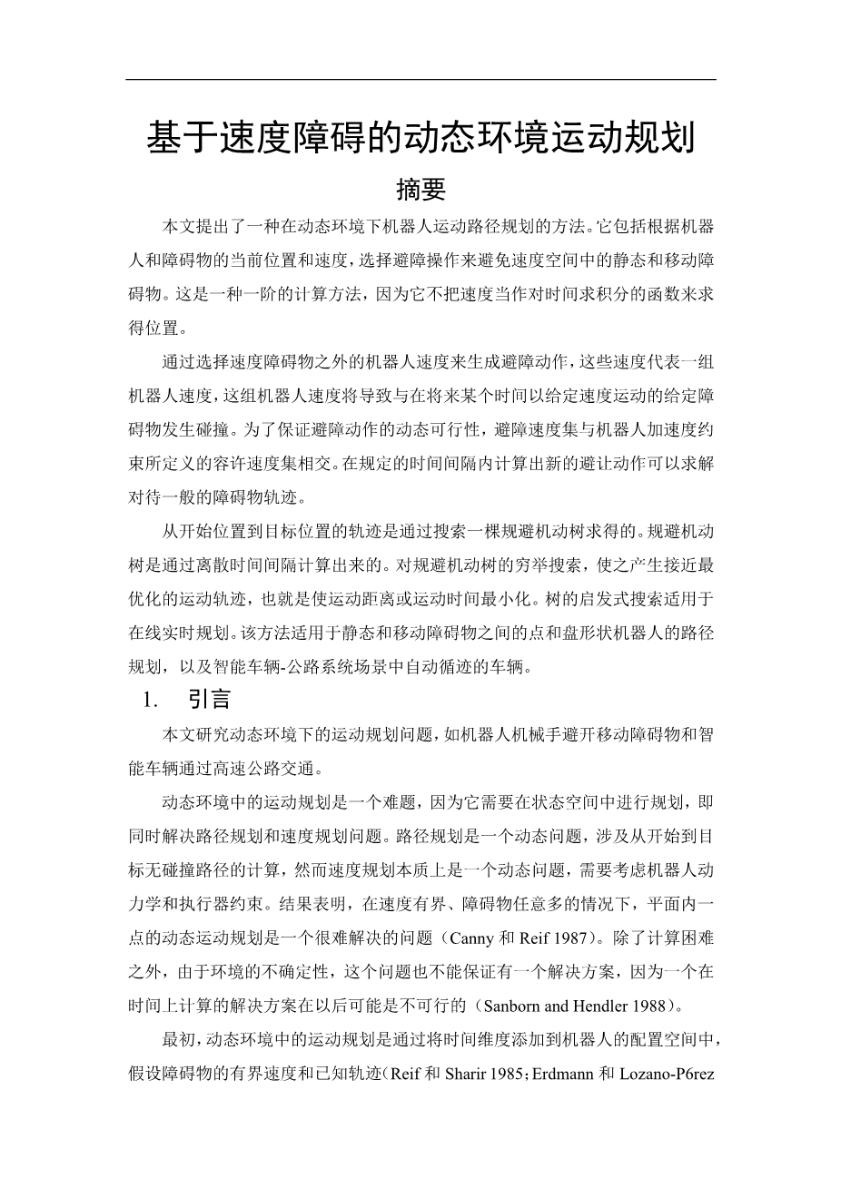 基于速度障碍的动态环境运动规划外文翻译资料 2022-08-09 16:16:31 英语原文共 13 页,剩余内容已隐藏,支付完成后下载完整资料 英语译文共 26 页,剩余内容已隐藏,支付完成后下载完整资料 资料编号:[238934],资料为PDF文档或Word文档,PDF文档可免费转换为Word 原文和译文剩余内容已隐藏,您需要先支付 30元 才能查看原文和译文全部内容!立即支付 发小红书推广免费获取该资料资格。点击链接进入获取推广文案即可: Ai一键组稿 | 降AI率 | 降重复率 | 论文一键排版 PREVIOUS NEXT 您可能感兴趣的文章 彩色图像中的人脸检测与识别外文翻译资料 一种非线性离散奇异大规模控制系统的稳定性外文翻译资料 融合领域特定和可训练的特征,用于人脸图像的性别识别外文翻译资料 ASP. NET概述外文翻译资料 基于深度卷积激活特性的地面云分类外文翻译资料 at89s52单片机简介外文翻译资料 实时多手势识别人机交互系统外文翻译资料 基于DTW改进算法的语音识别外文翻译资料 研究区域自动气象站的后端实时数据质量控制方法外文翻译资料 电动汽车的智能前车灯控制器设计外文翻译资料