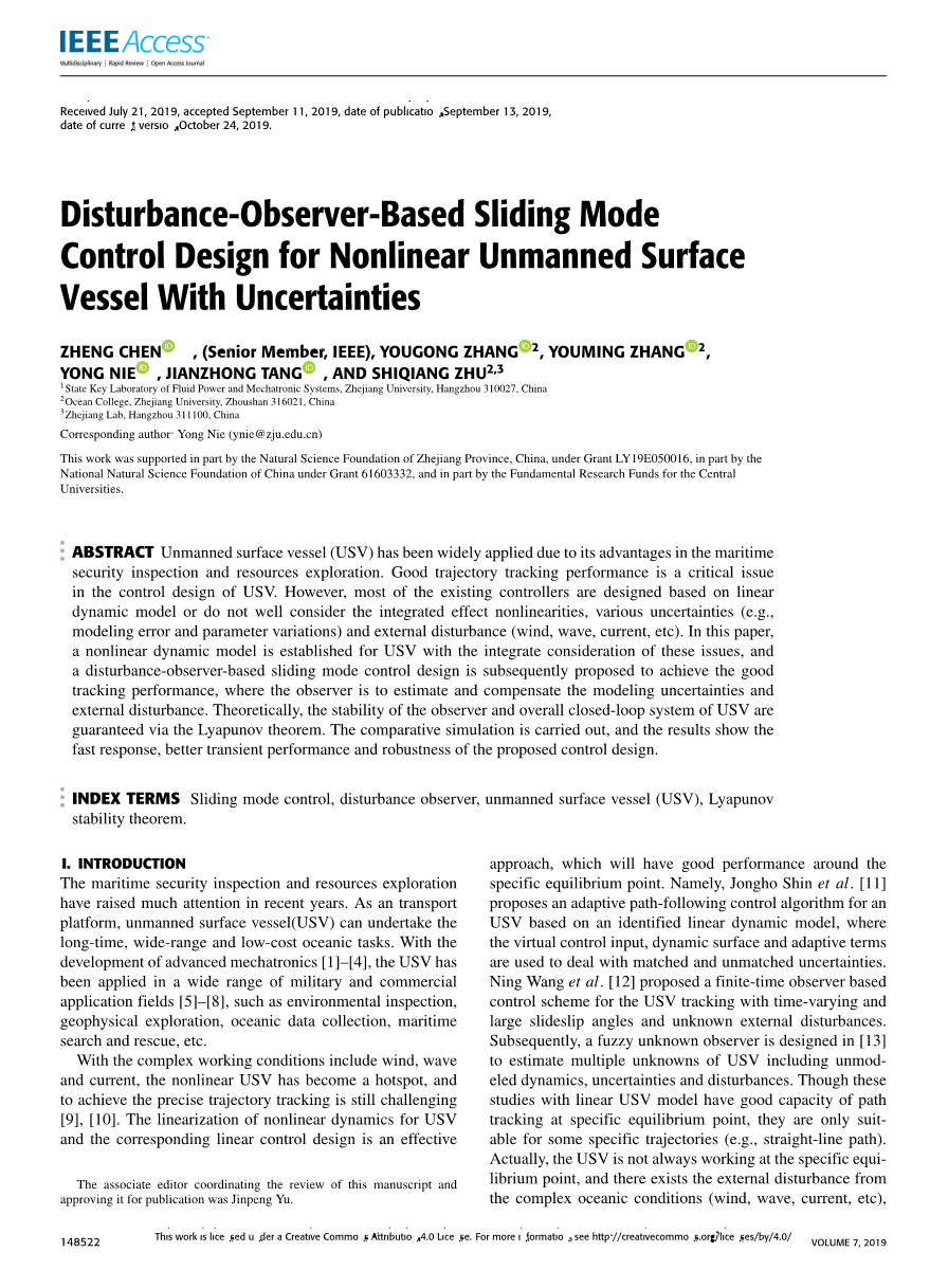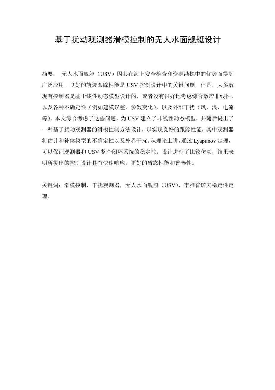 基于扰动观测器滑模控制的无人水面舰艇设计外文翻译资料