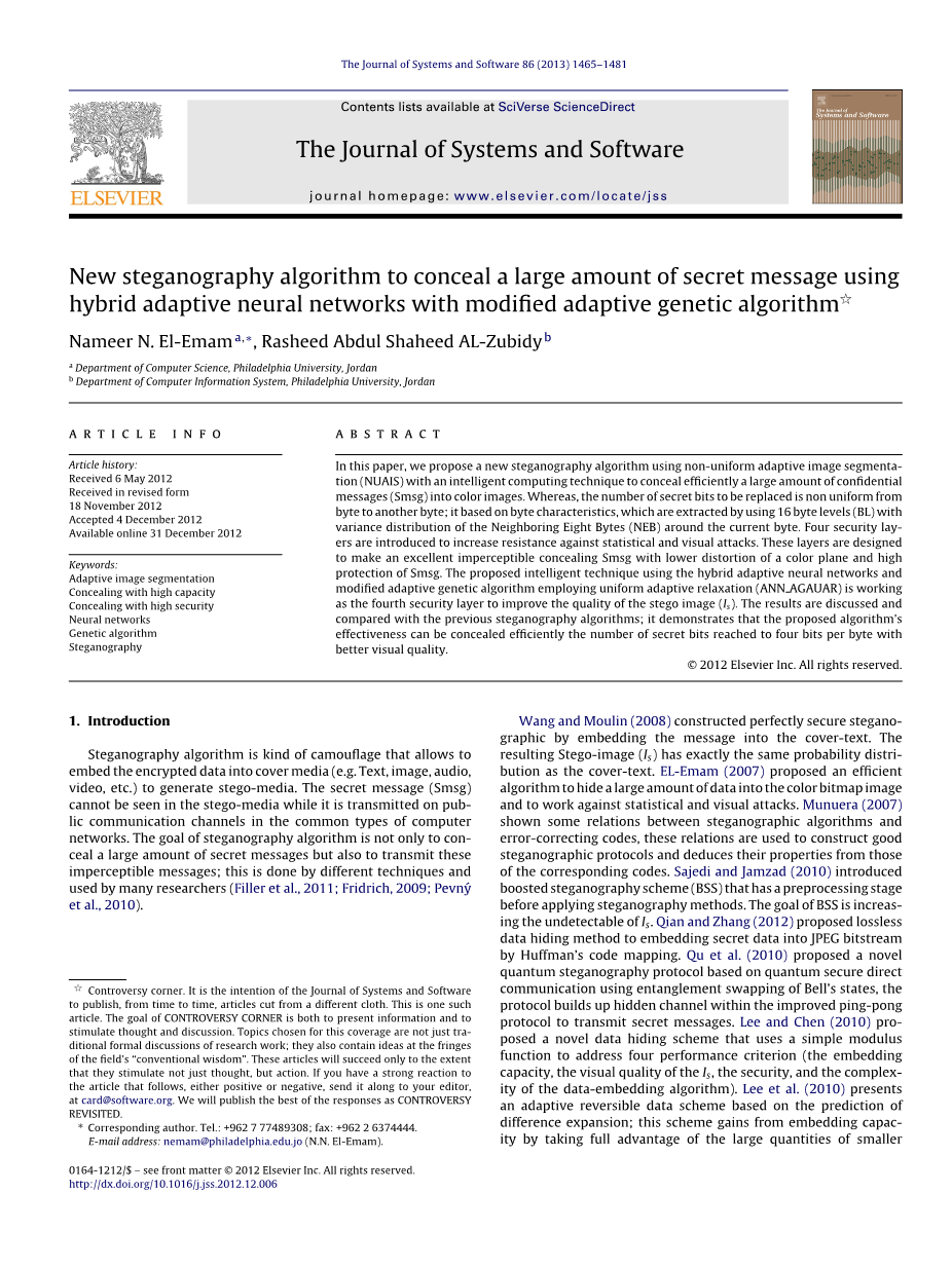 利用混合自适应神经网络与可修改的自适应遗传算法可隐藏大量消息的新型隐写算法