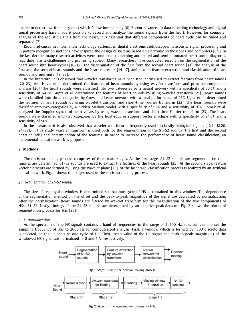 在这项研究中,小波变换既可以用于S1-S2声音的分离,又用于特征参数的确定。 对于特征提取,利用了前五个子带。