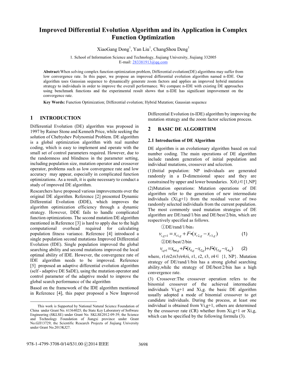 关键词:函数优化;差分进化;混合变异;高斯序列