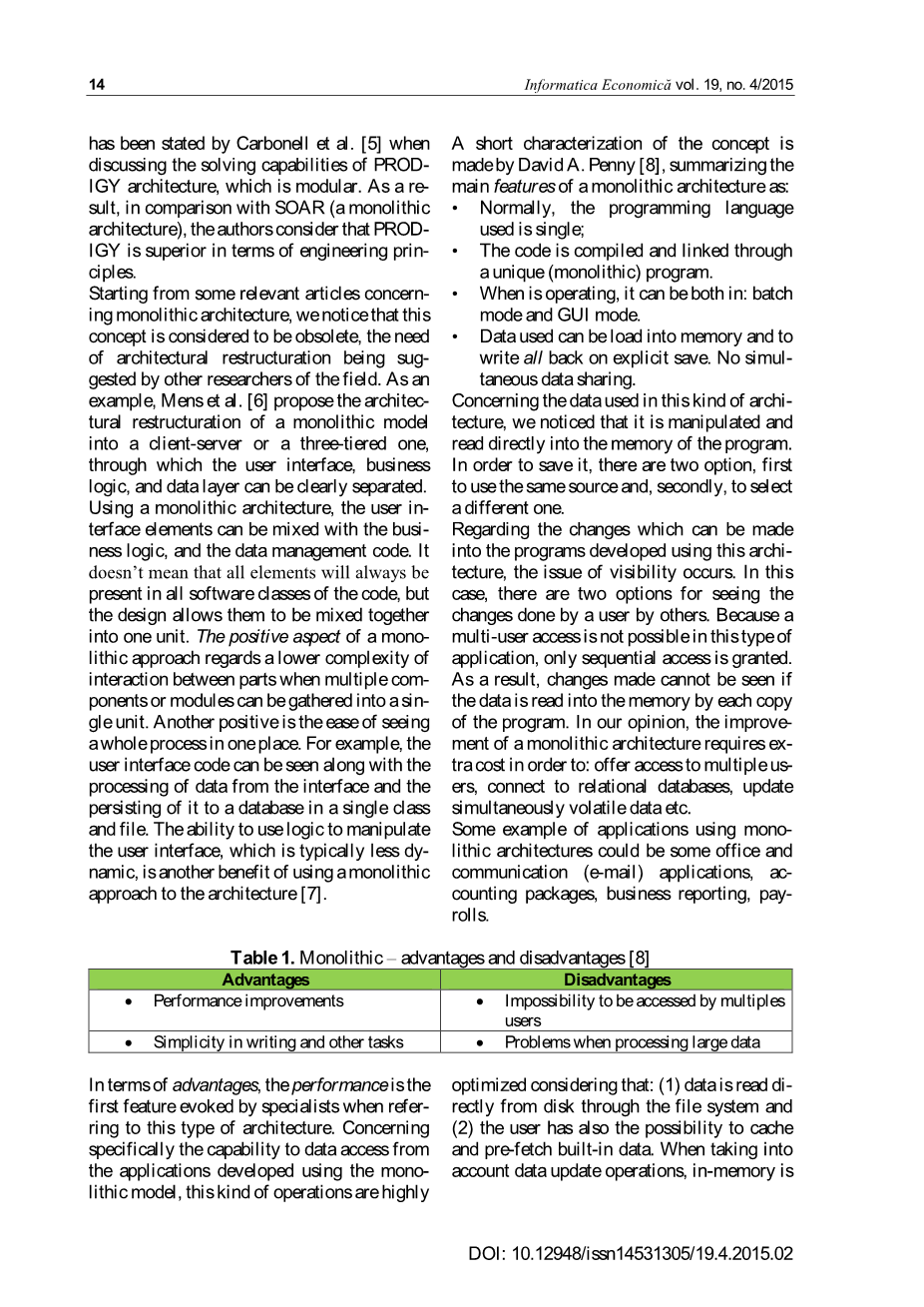 从关于整体架构的一些相关文章开始,我们注意到这个概念被认为是过时的,其他研究人员提出了架构重构的需要。例如,Mens et al[6]提出将单片模型的体系结构重组为客户端服务器或三层架构,用户界面,业务逻辑和数据层可以通过这些结构重构。使用单片架构,用户界面元素可以与业务逻辑和数据管理代码混合。这并不意味着所有元素将始终存在于代码的所有软件类中,但是设计允许它们混合在一起。单一方法的积极方面是,当多个组件或模块可以聚集到单个单元中时,部件之间的相互作用的复杂度较低。另一个积极因素是在一个地方看到整个过程的容易程度。例如,可以看到用户界面代码与来自接口的数据处理以及将其持续到单个类和文件中的数据库。使用逻辑来操纵用户界面(通常较少动态)的能力是使用单片方法来构建架构的另一个好处[7]。