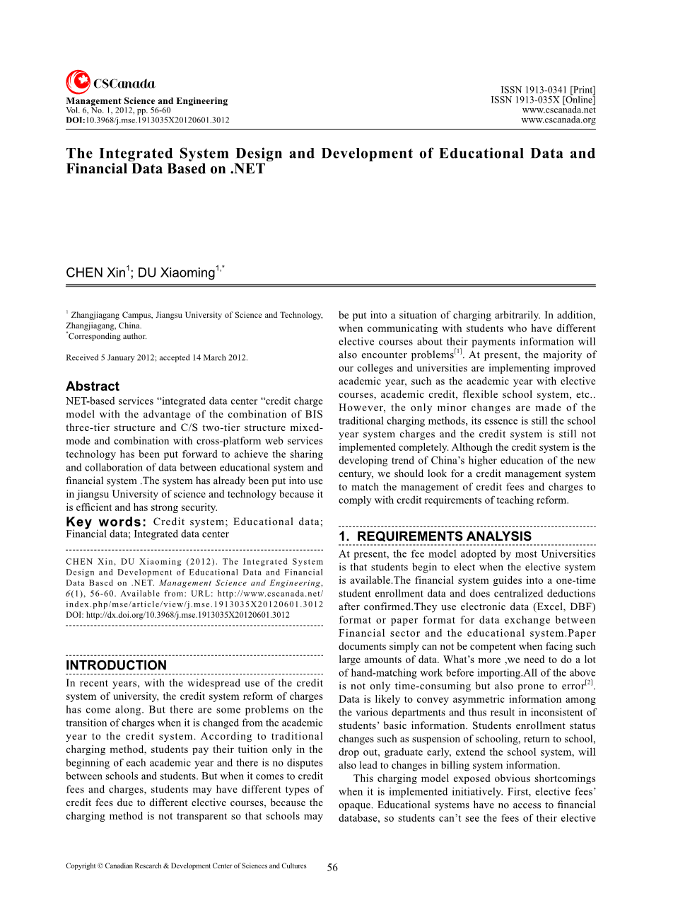 原文标题 The Integrated System Design and Development of Educational Data and Financial Data Based on .NET