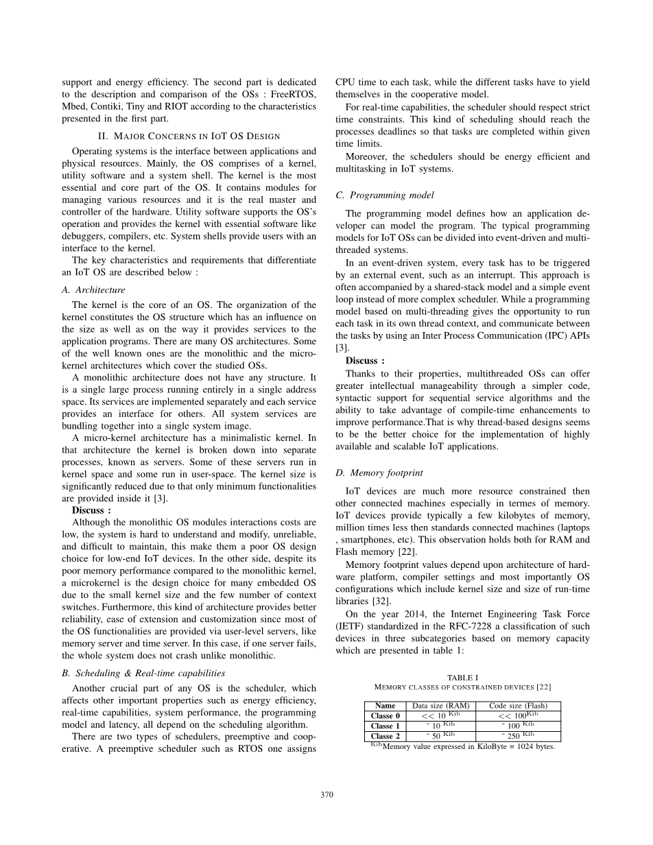 在2014年,互联网工程任务组(IETF)在RFC-7228标准中将此类设备按照内存容量分为三个子类别,如表1所示: