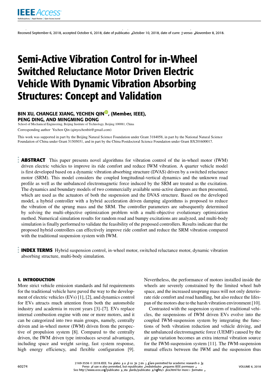 索引术语:混合悬架控制,轮内电机,开关磁阻电机,动态吸振结构,多体仿真