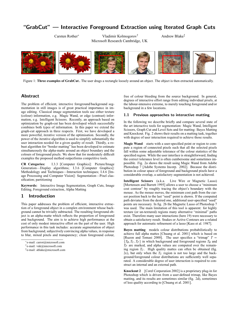 关键词:交互式图像分割,图形切割,图像编辑,前景提取, Alpha遮罩