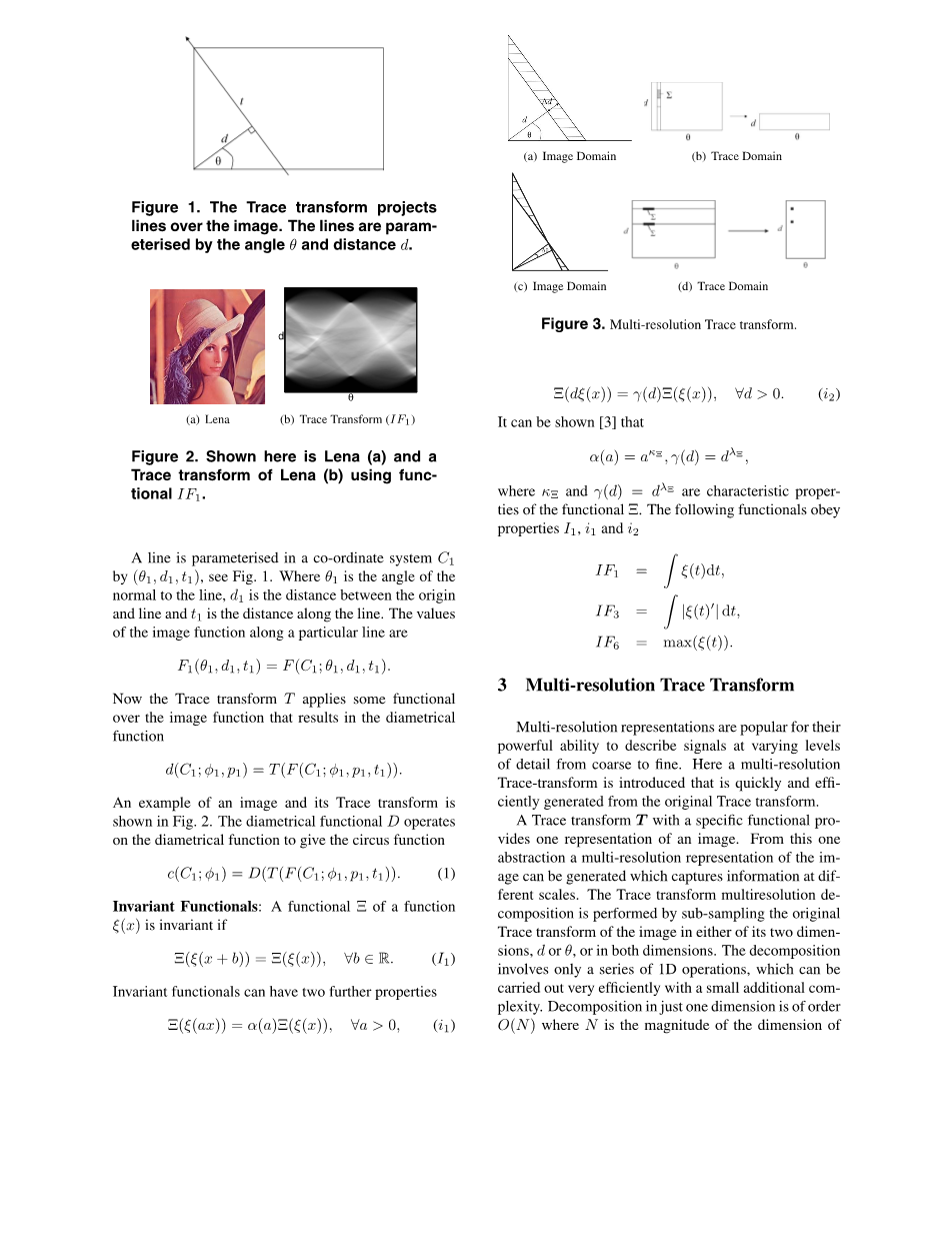 Trace变量及其属性以及如何使用它来提取不变特征在第2节中给出。多分辨率Trace变换在第3节中介绍。图像中鲁棒标识符的提取在第4节中描述。第5节给出了实验结果, 然后在第6节中得出结论。