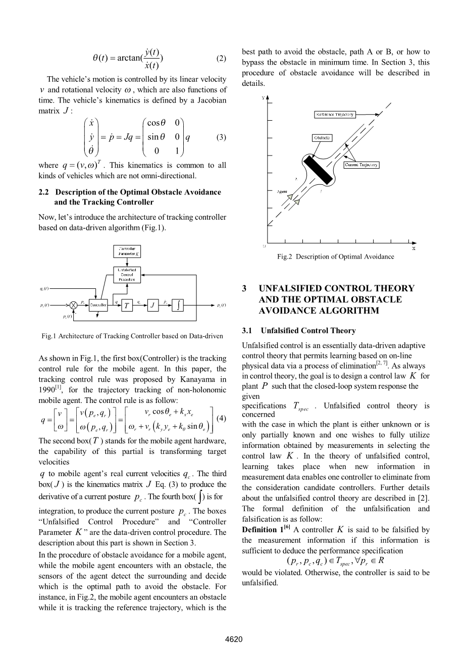 本文的目的是提出一种新的方法轨迹跟踪与避障的优化移动代理。数据驱动控件是无模型方法,它专注于创建控制器,并仅仅使用系统的输入输出数据。非伪控制介绍了实现数据驱动控制[2]的原理。不可证伪控制理论本质上是数据驱动的自适应控制理论,允许学习的基础上通过消除[3]的过程在线物理数据。