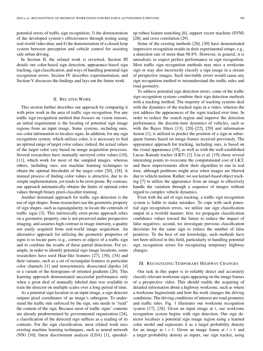 索引术语 - 分类置信度传播,高速公路工作区识别,基于内核的符号跟踪,用于符号检测的学习颜色模型,符号分类。