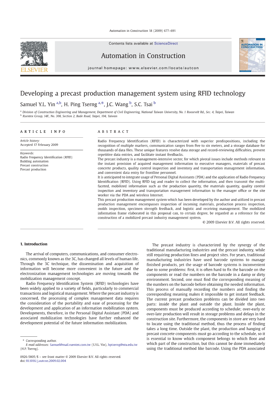 射频识别系统(RFID)技术已被广泛应用于各种领域,特别是商业交易和物流管理。就预制行业而言,处理复杂的管理数据需要考虑信息动员系统开发和应用的便携性和便于处理。因此,个人数字助理(PDA)和相关动员技术的发展进一步提高了未来信息动员的发展潜力。