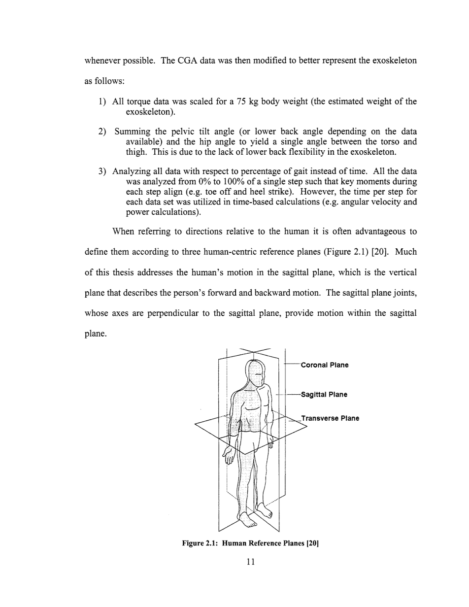 当提及相对于人的方向时,根据三个以人为中心的参考平面来定义它们通常是有利的(图2.1)。本论文的大部分内容是研究人体在矢状面上的运动,即描述人的前后运动的垂直平面。矢状面的关节的轴线垂直于矢状面,在矢状面内提供运动。