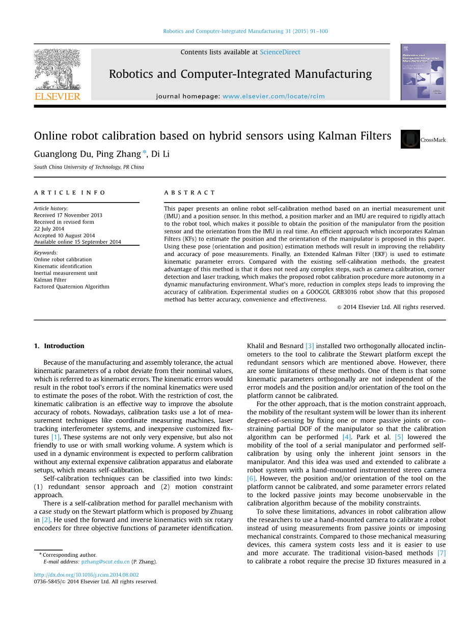 基于卡尔曼滤波的混合传感器在线机器人标定