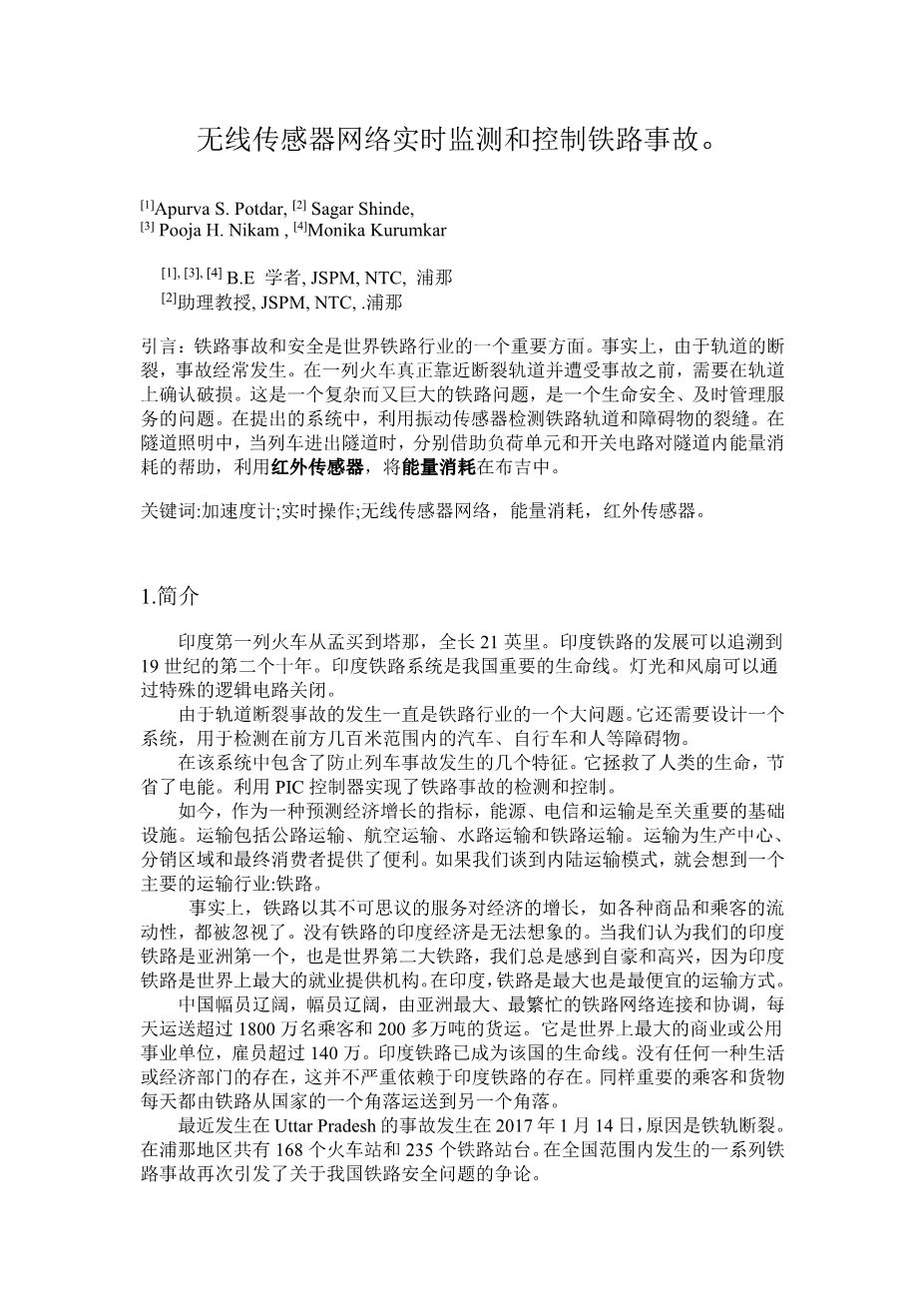 基于超声波检测的停车场车位检测系统设计外文翻译资料 2022-03-30 21:17:40 英语原文共 8 页,剩余内容已隐藏,支付完成后下载完整资料 英语原文共 17 页,剩余内容已隐藏,支付完成后下载完整资料资料编号:[14782],资料为PDF文档或Word文档,PDF文档可免费转换为Word 原文和译文剩余内容已隐藏,您需要先支付 30元 才能查看原文和译文全部内容!立即支付 发小红书推广免费获取该资料资格。点击链接进入获取推广文案即可: Ai一键组稿 | 降AI率 | 降重复率 | 论文一键排版 PREVIOUS NEXT 您可能感兴趣的文章 彩色图像中的人脸检测与识别外文翻译资料 一种非线性离散奇异大规模控制系统的稳定性外文翻译资料 融合领域特定和可训练的特征,用于人脸图像的性别识别外文翻译资料 ASP. NET概述外文翻译资料 基于深度卷积激活特性的地面云分类外文翻译资料 at89s52单片机简介外文翻译资料 实时多手势识别人机交互系统外文翻译资料 基于DTW改进算法的语音识别外文翻译资料 研究区域自动气象站的后端实时数据质量控制方法外文翻译资料 电动汽车的智能前车灯控制器设计外文翻译资料