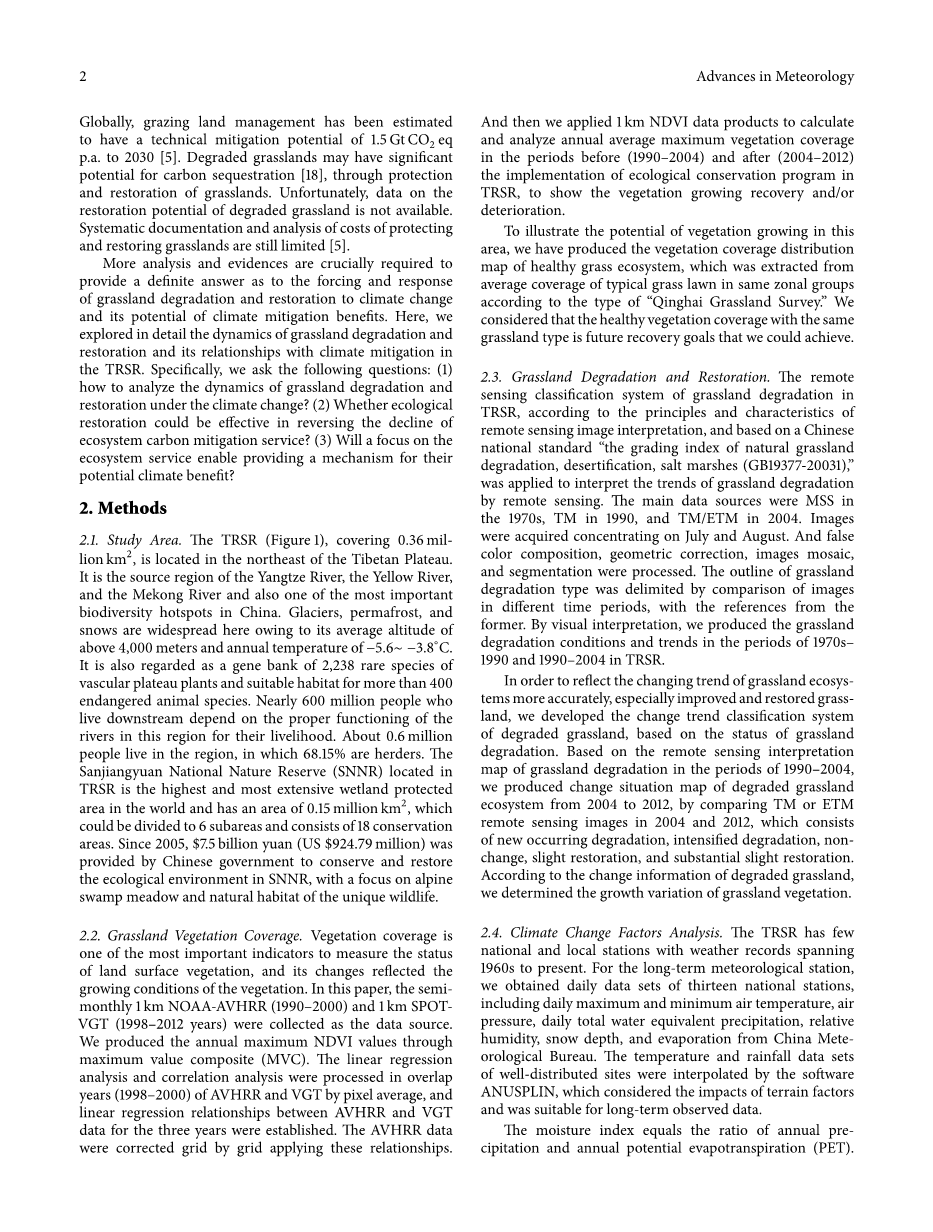为了给草原退化和恢复气候变化的胁迫和反应及其气候减缓效益的潜力提供一个明确大的答案,需要更多的分析和数据。在这篇文章中,我们详细探讨了三江源地区的草原退化和恢复的动态及其与气候减缓的关系。具体来说,我们提出以下问题:(1)如何分析气候变化下草原退化和恢复的动态?(2)生态恢复能否有效扭转生态系统碳减排服务的衰落?(3)重点关注生态服务系统,能够为其潜在的气候效益提供机制吗?