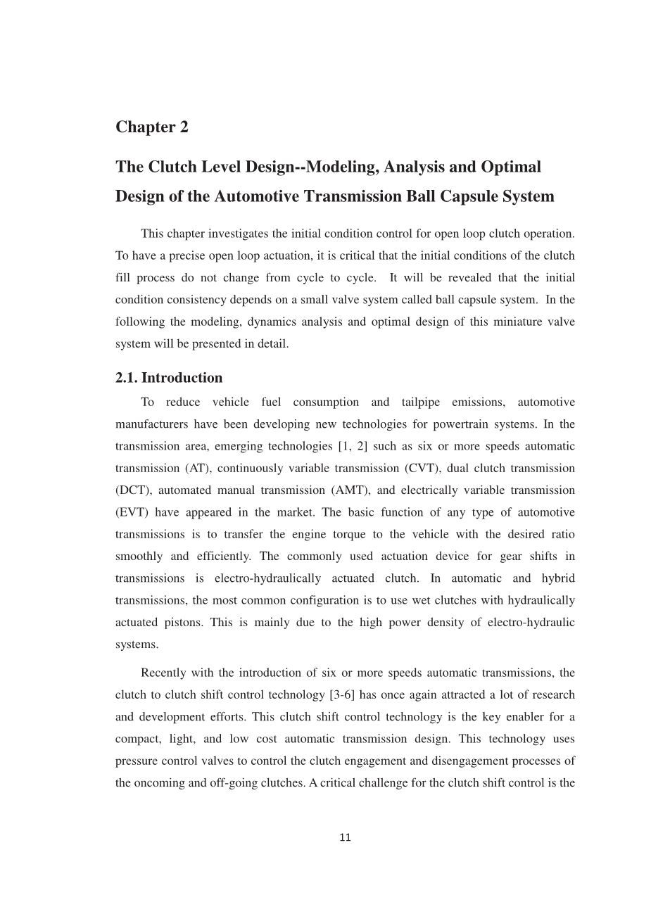 本章研究了开环离合器运行的初始条件控制。为了获得精确的开环驱动,关键是离合器充填过程的初始条件不随循环而改变。结果表明,初始条件的一致性取决于一种称为球囊系统的小型阀门系统。在接下来的建模中,将详细介绍这种微型阀门系统的动力学分析和优化设计。
