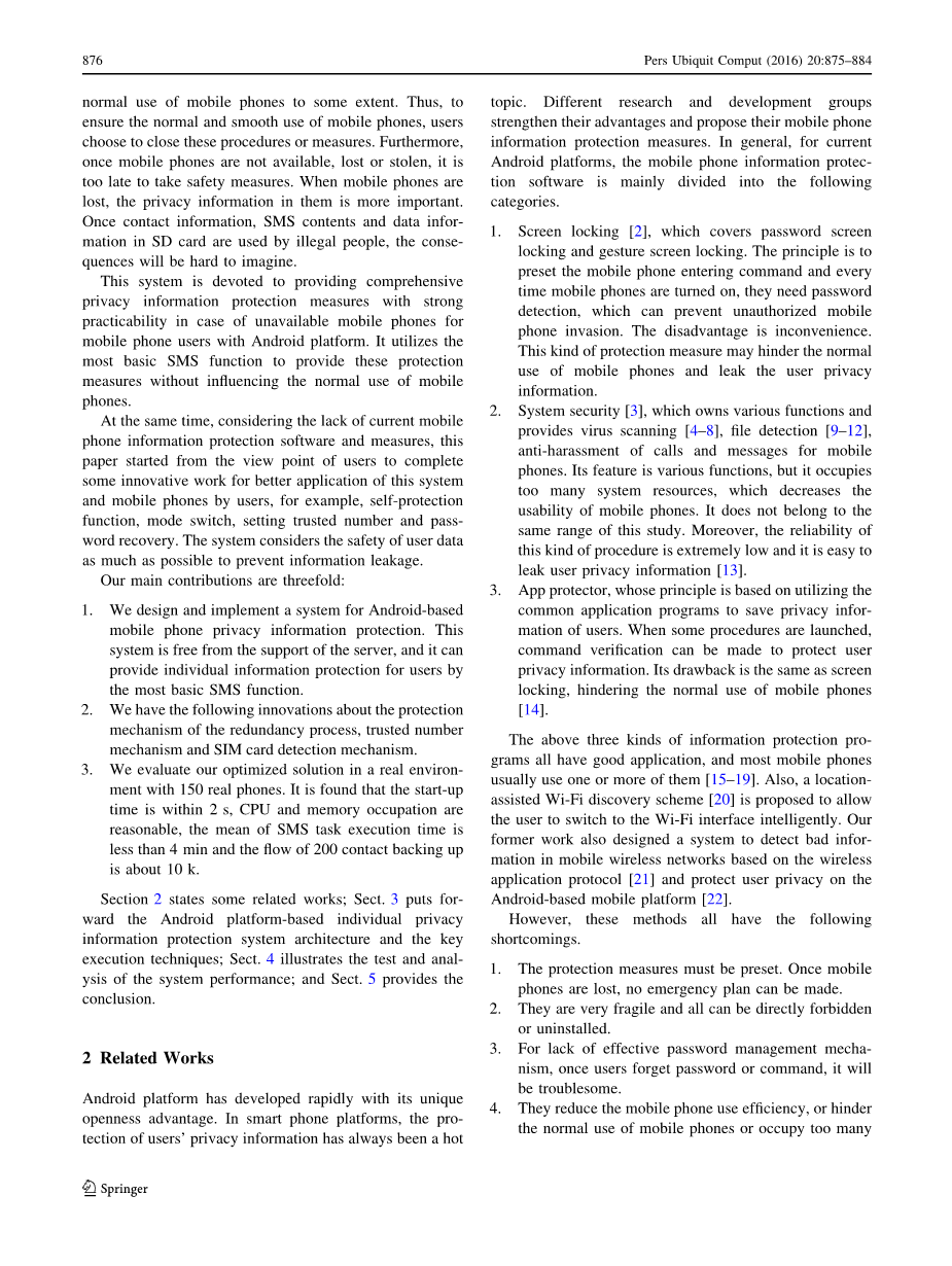 以上三种信息保护方案均已有良好的应用程序,并且大多数手机通常使用其中一个或更多。此外,提出了位置辅助的Wi-Fi发现方案以允许用户智能地切换Wi-Fi接口。我们以前的工作还设计了一个系统来检测基于无线应用协议的移动无线网络中的不良信息并保护基于Android的移动平台上的用户隐私。