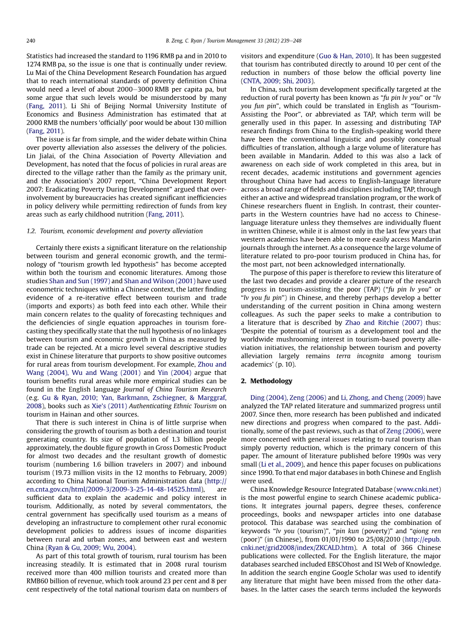 丁(2004),曾(2006)和李,钟,程(2009)分析了截止到2007年的TAP相关文献和总结进展。自那时以来,更多的研究已发表并指出新的方向和进步,。此外,一些过去的评论,如曾(2006),更关心与乡村旅游有关的一般问题,而不是简单的减少贫困,这是本文关注的主要问题。90年代以前出版的文献量非常少(李等人,2009),因此,本文侧重于自1990以来的出版物。为此,主要使用中英文数据库。