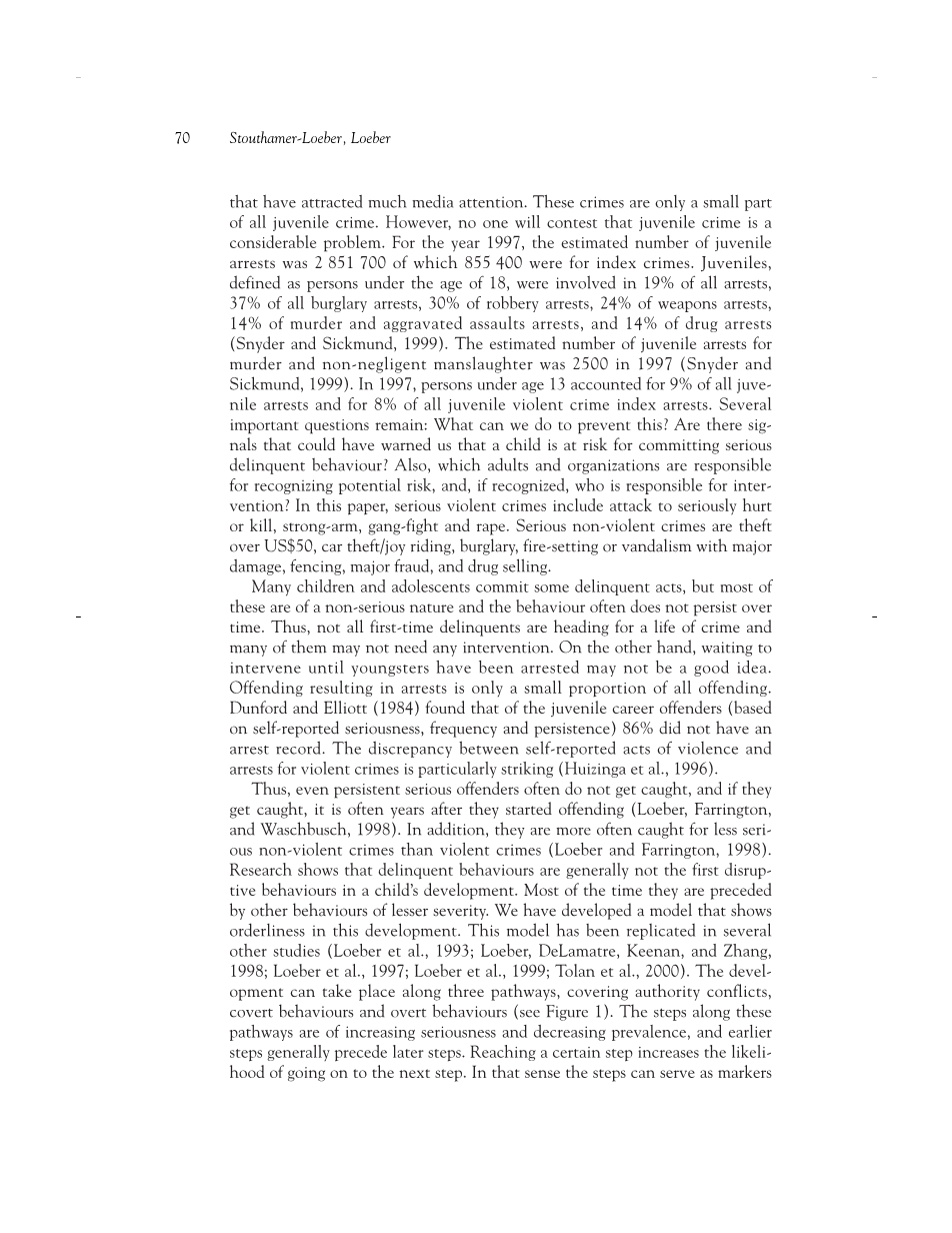 在那些向少年法庭请愿的男孩中, 四分之一(28.1%)在13.5岁时有破坏性行为障碍的诊断。相反地,最终严重的罪犯和男孩中出现在少年法庭的四分之三没有充足数量的症状在13.5岁时被诊断或者在后来出现问题,或者他们的监护人没有意识到问题的程度。