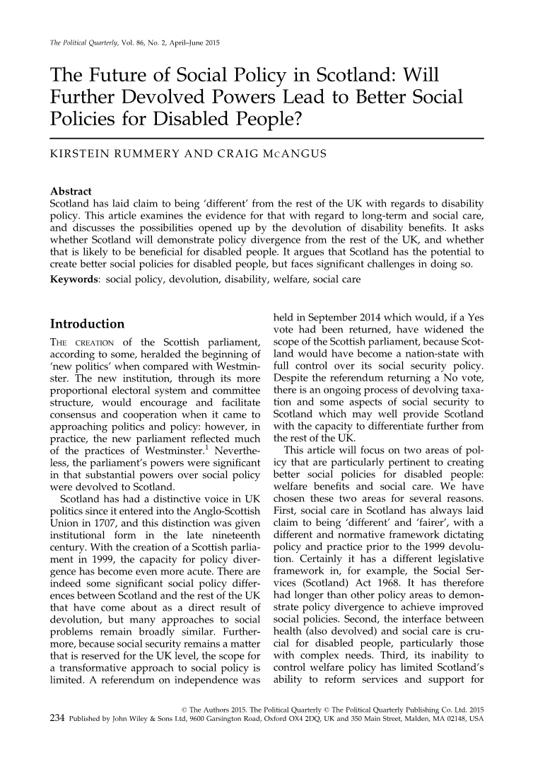 苏格兰社会政策的未来:进一步下放权力是否会产生对残疾人更有利的社会政策?