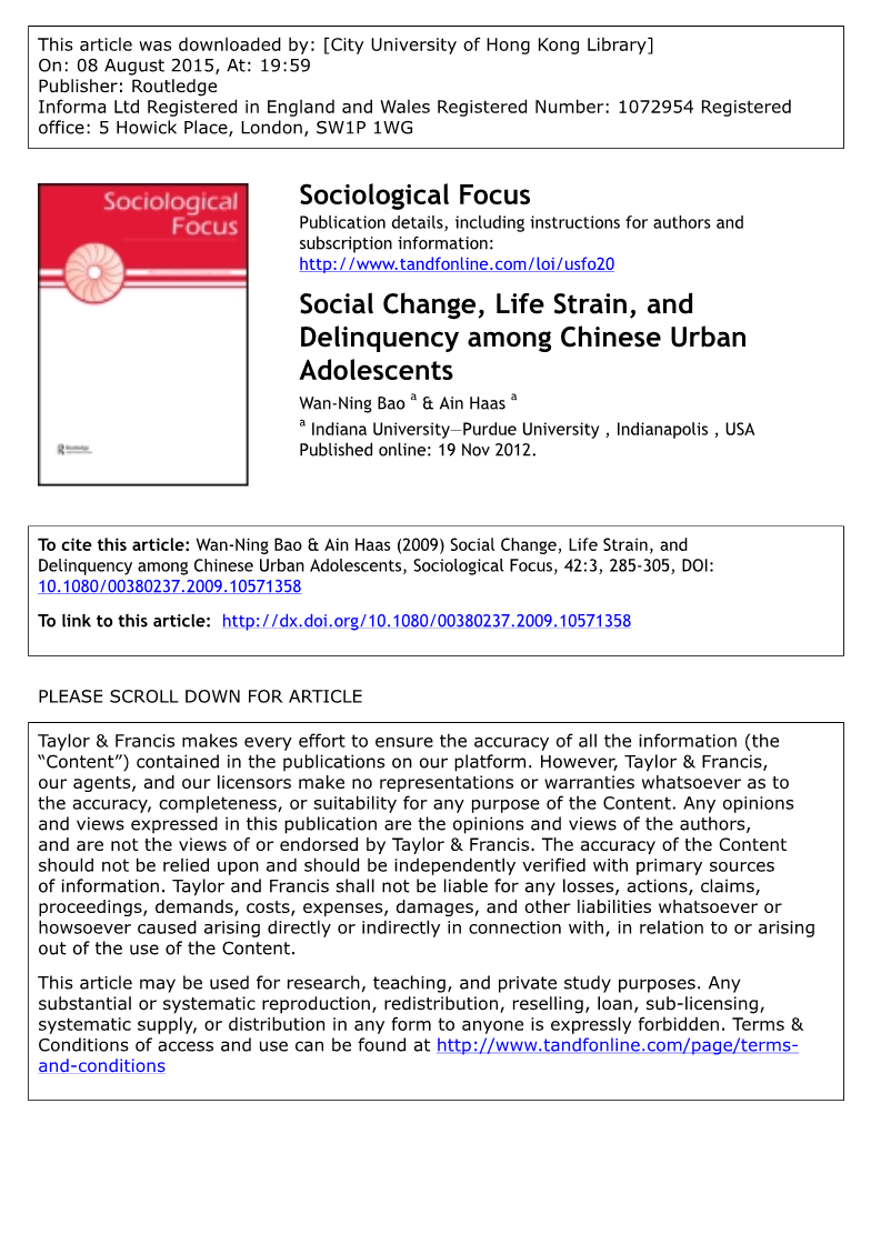 社会变革、生活压力与中国城市的青少年犯罪行为外文翻译资料