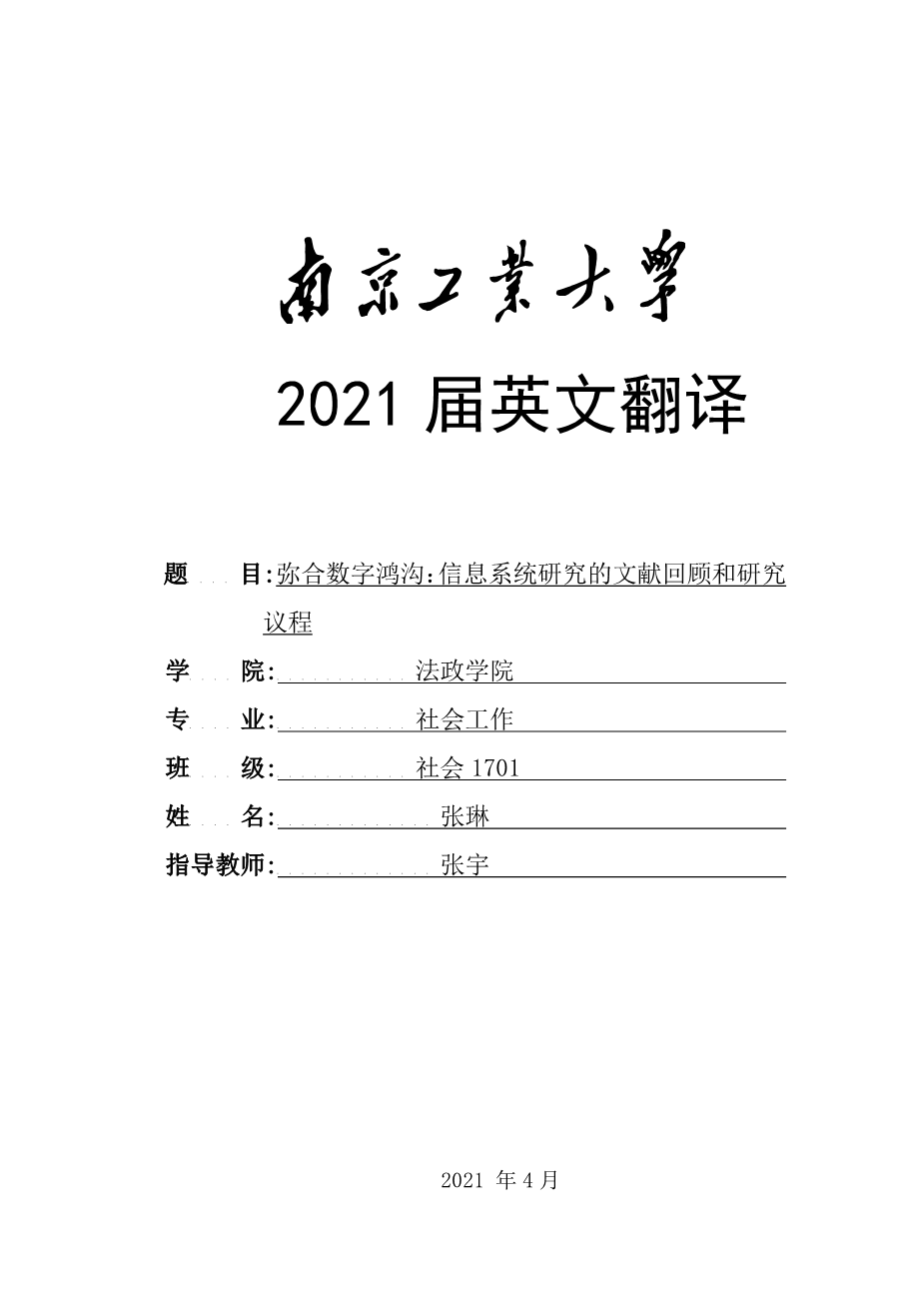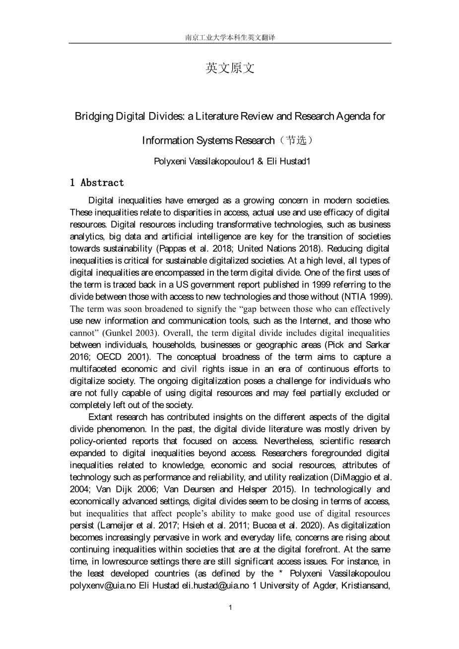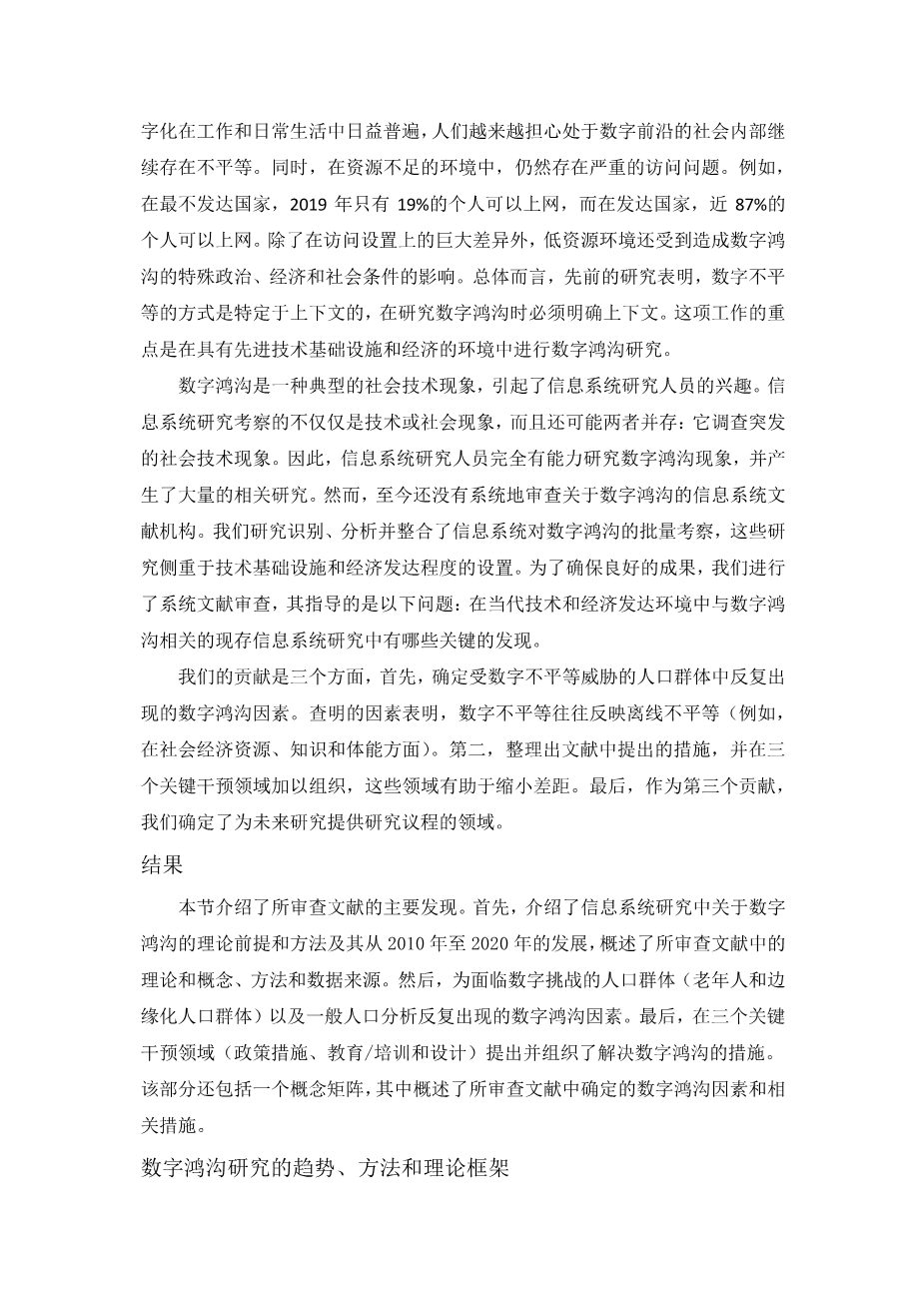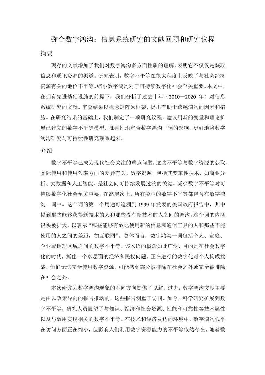 弥合数字鸿沟:信息系统研究的文献回顾和研究议程摘要外文翻译资料