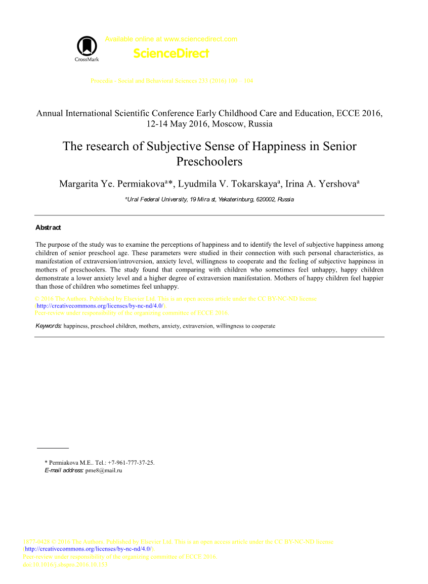 Permyakova M.,母亲及其少年儿童的幸福主观感觉 伊兹维西亚,乌拉尔联邦大学学报。教育,科学和文化问题 2016. V. 1(147), P85-91。 剩余内容已隐藏,支付完成后下载完整资料