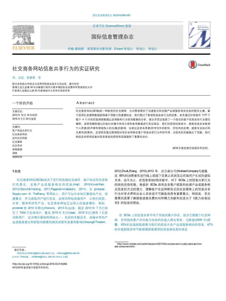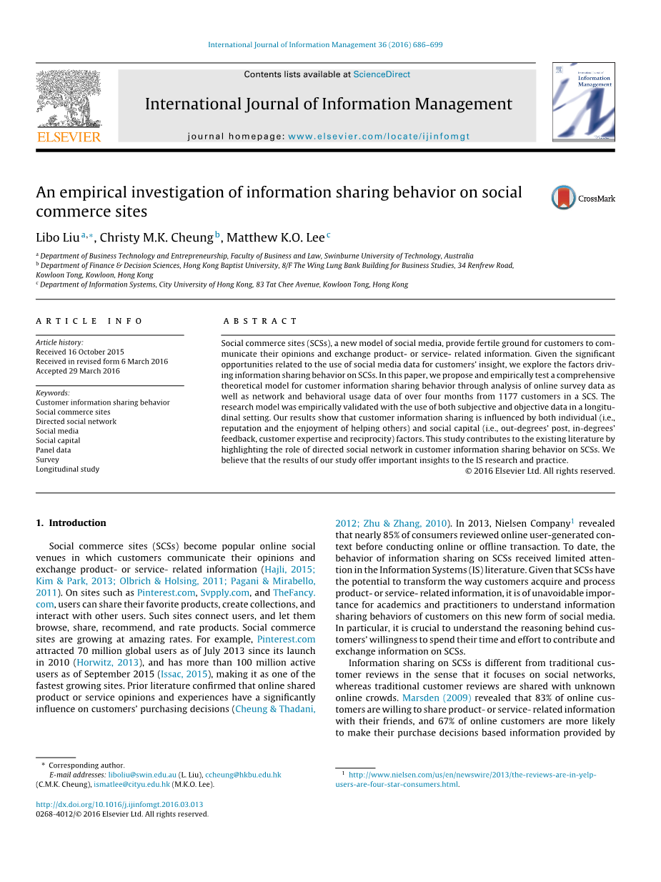 社交商务网站信息共享行为的实证研究外文翻译资料