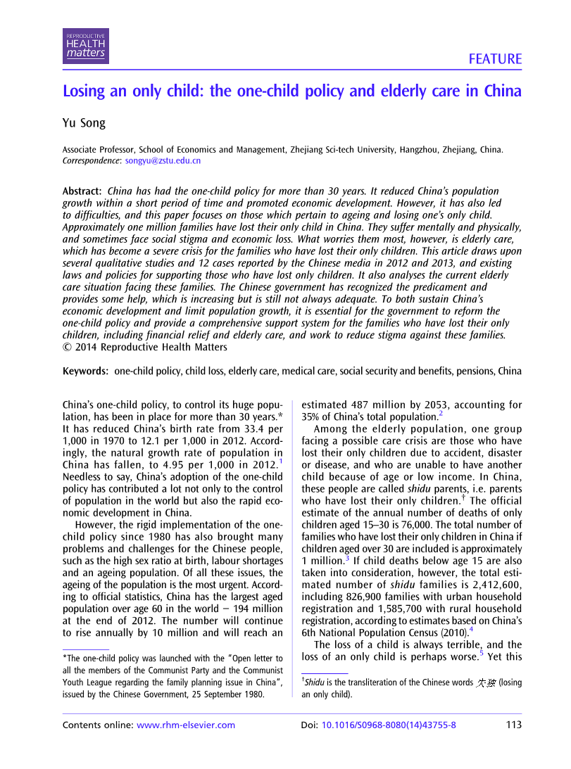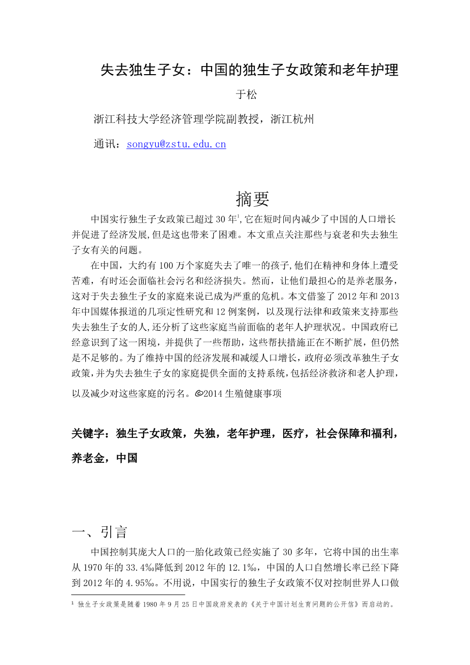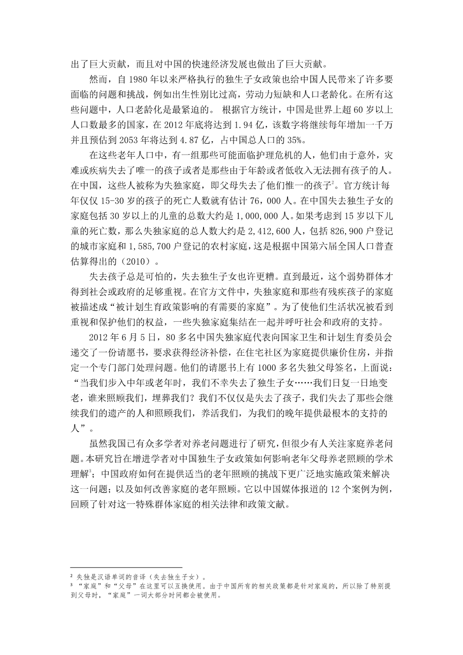 失去独生子女:中国的独生子女政策和老年护理外文翻译资料 2023-02-19 20:32:27 英语原文共 12 页,剩余内容已隐藏,支付完成后下载完整资料 英语译文共 17 页,剩余内容已隐藏,支付完成后下载完整资料 资料编号:[411644],资料为PDF文档或Word文档,PDF文档可免费转换为Word 原文和译文剩余内容已隐藏,您需要先支付 30元 才能查看原文和译文全部内容!立即支付 发小红书推广免费获取该资料资格。点击链接进入获取推广文案即可: Ai一键组稿 | 降AI率 | 降重复率 | 论文一键排版 PREVIOUS NEXT 您可能感兴趣的文章 云南大理州农村养老保障体系与白族土地使用权流转——以中国剑川县为例外文翻译资料 影响公众对城市家庭医生计划不满的因素:法尔斯省一项基于一般群的研究外文翻译资料 中国的长期护理保险政策试验:对准入的影响外文翻译资料 中国医疗服务供给侧“看病难”的供需原因分析外文翻译资料 印度农村老年保健的老年人健康信息技术框架:一项政策倡议外文翻译资料 慈善众筹的社会筹款机制外文翻译资料 采用农业保险的决定因素:来自巴西圣保罗州农民的证据外文翻译资料 社区护理的现状及对策研究外文翻译资料 新加坡:社会发展,住房和中央公积金基金外文翻译资料 美利坚合众国的关爱老社区和社会包容外文翻译资料