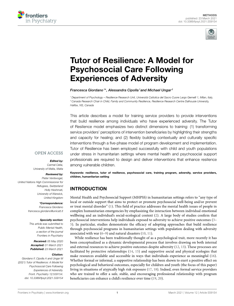 原文作者:Francesca Giordano, Alessandra Cipolla (1),Michael Ungar(2)
