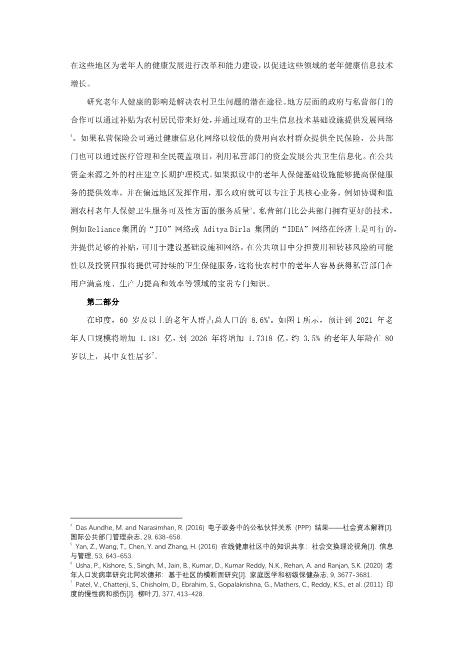 The elder health IT Implication is a potential solution to healthcare in the villages. Governmental collaboration at the local level with the private sector can bring benefits for the rural gentry through subsidies and provide for developmental network through the existing health IT infrastructure[4].If the private insurance companies reach out to the rural masses for universal coverage at a lower cost through the health IT network, the public sector can also leverage the private sectorrsquo;s capital for the development of public health IT through the projects on healthcare management and universal coverage for long term care model in the villages outside of public funding sources. If the proposed elder health IT infrastructure fosters health service delivery efficiency and is effective in the remote areas, the government can focus on its core business such as coordination and monitoring the service quality in terms of healthcare accessibility for rural seniors[5]. The private sector has better technology than the public sector, for example, the Reliance group “JIO” network or the Aditya Birla group “IDEA” network is economically viable and provides adequate subsidies that could be used to build the infrastructure and network. The possibility of cost-sharing and risk transfer in public projects, with a return on investment would provide for sustainable health care, which would give the older adults in the villages, easy access to the invaluable expertise of the private sector in the areas of user satisfaction, productivity gains and efficiency.