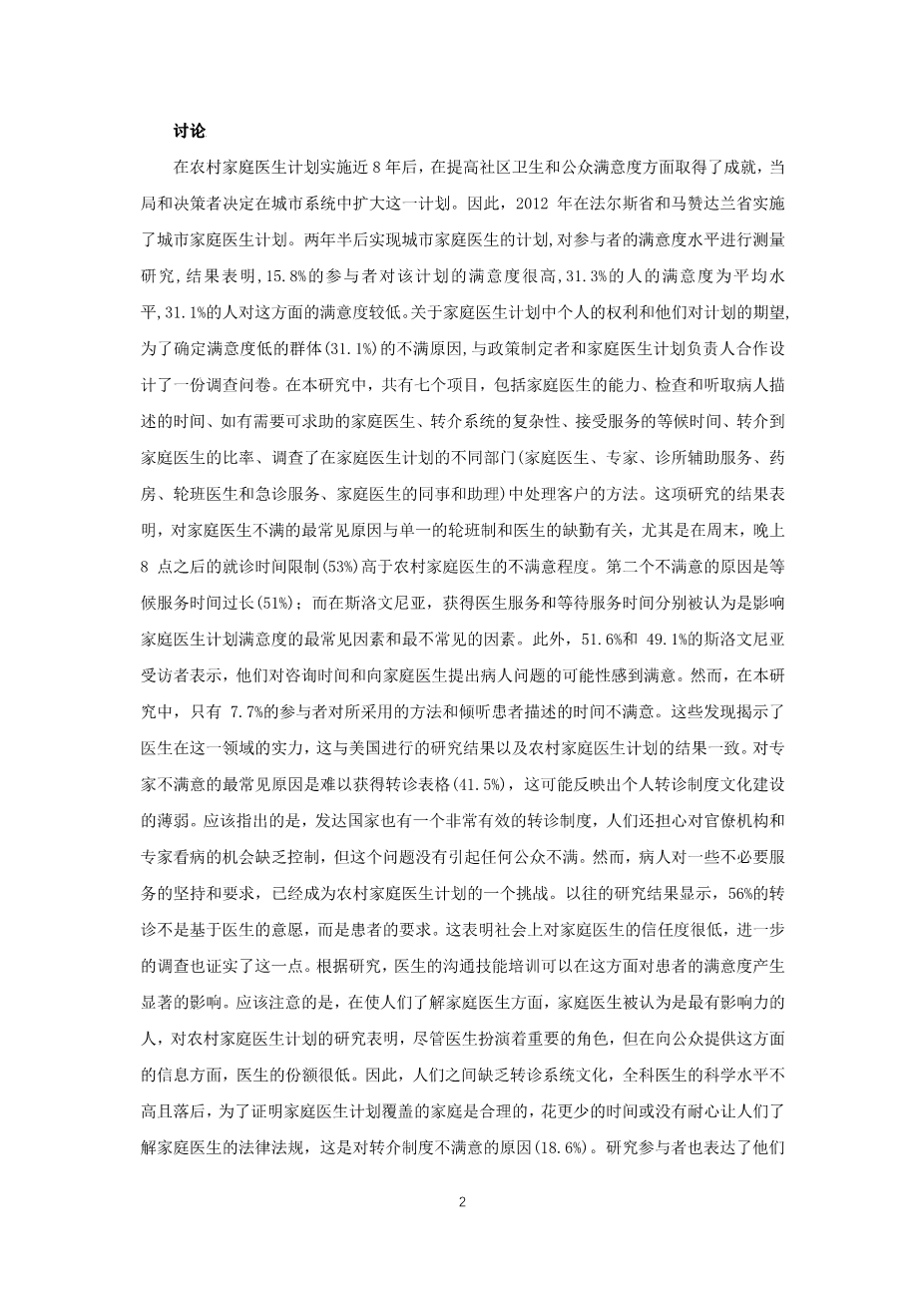影响公众对城市家庭医生计划不满的因素:法尔斯省一项基于一般群的研究外文翻译资料